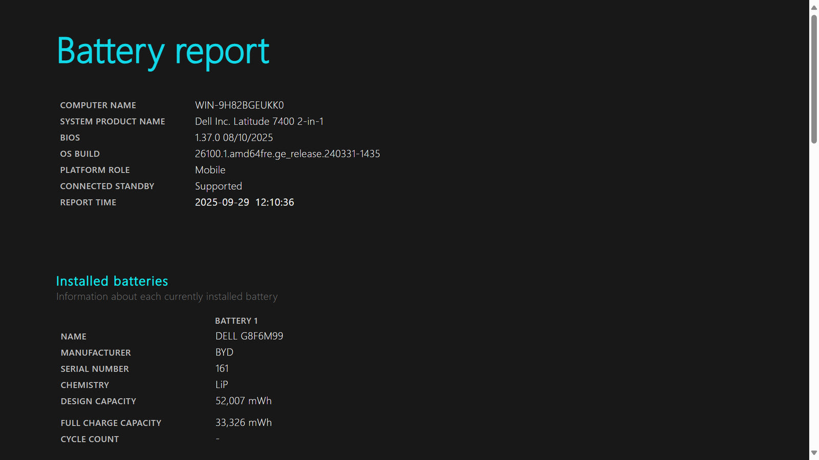 Battery Condition: 33,326/52,007 mWh 64.08%