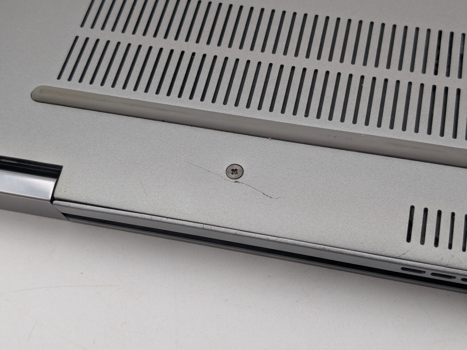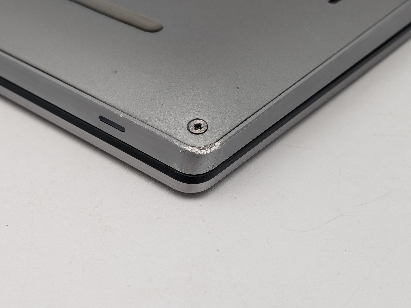 Cosmetic Defects: Interior: Marks on display, invisible during normal use. Heavy wear on keyboard and bezel, visible scratches on palm rest and around keyboard. Exterior: Scratches on lid, visible wear and scratches on bottom cover, scuffed along edges of device. Scratches on hinges. Chipped on bottom front corner. One bottom cover screw cannot be fully secured down.