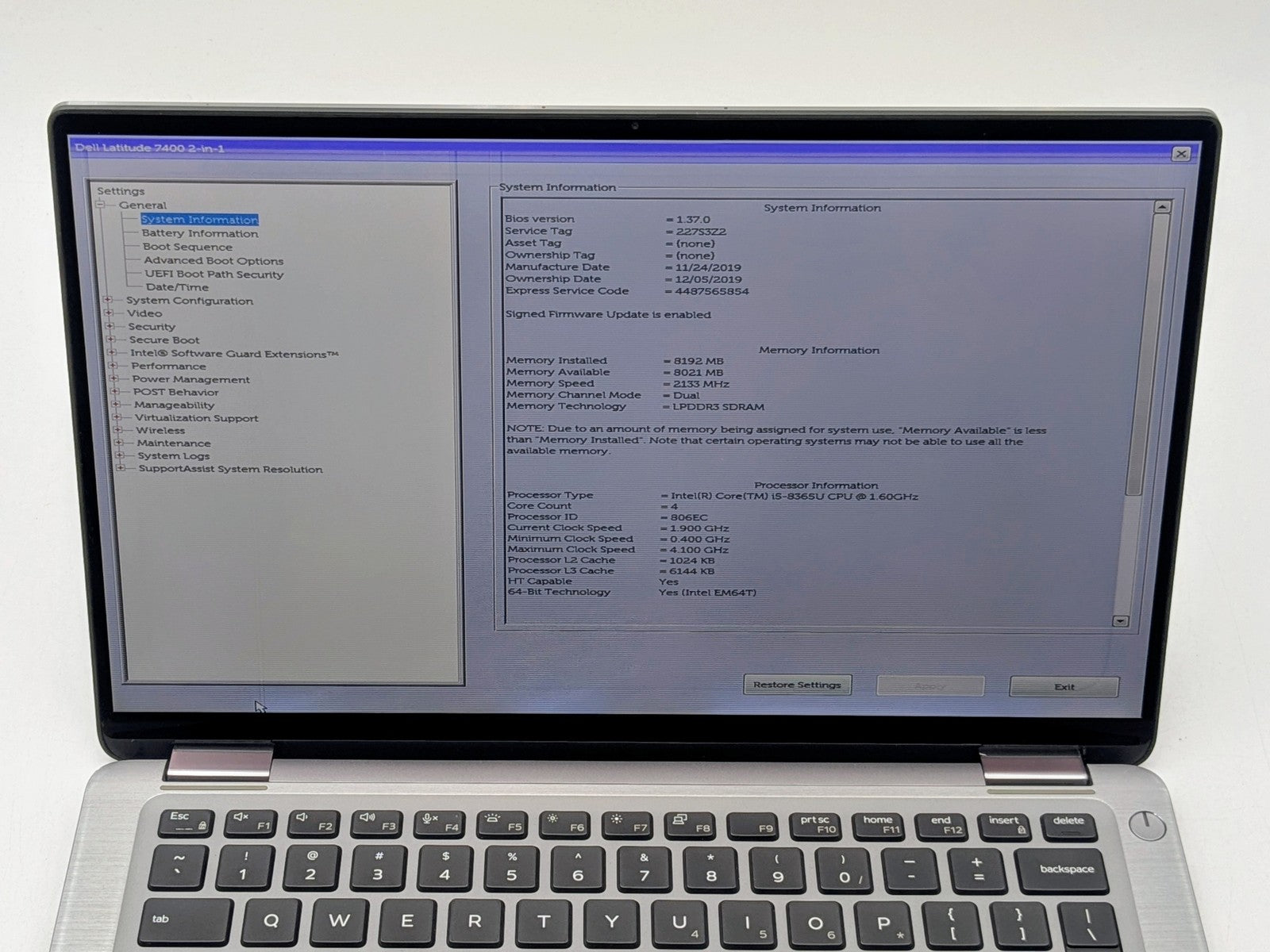 Dell Latitude 7400 2-in-1 14" FHD Touch I5-8365U 1TB SSD 8GB W11P Backlit