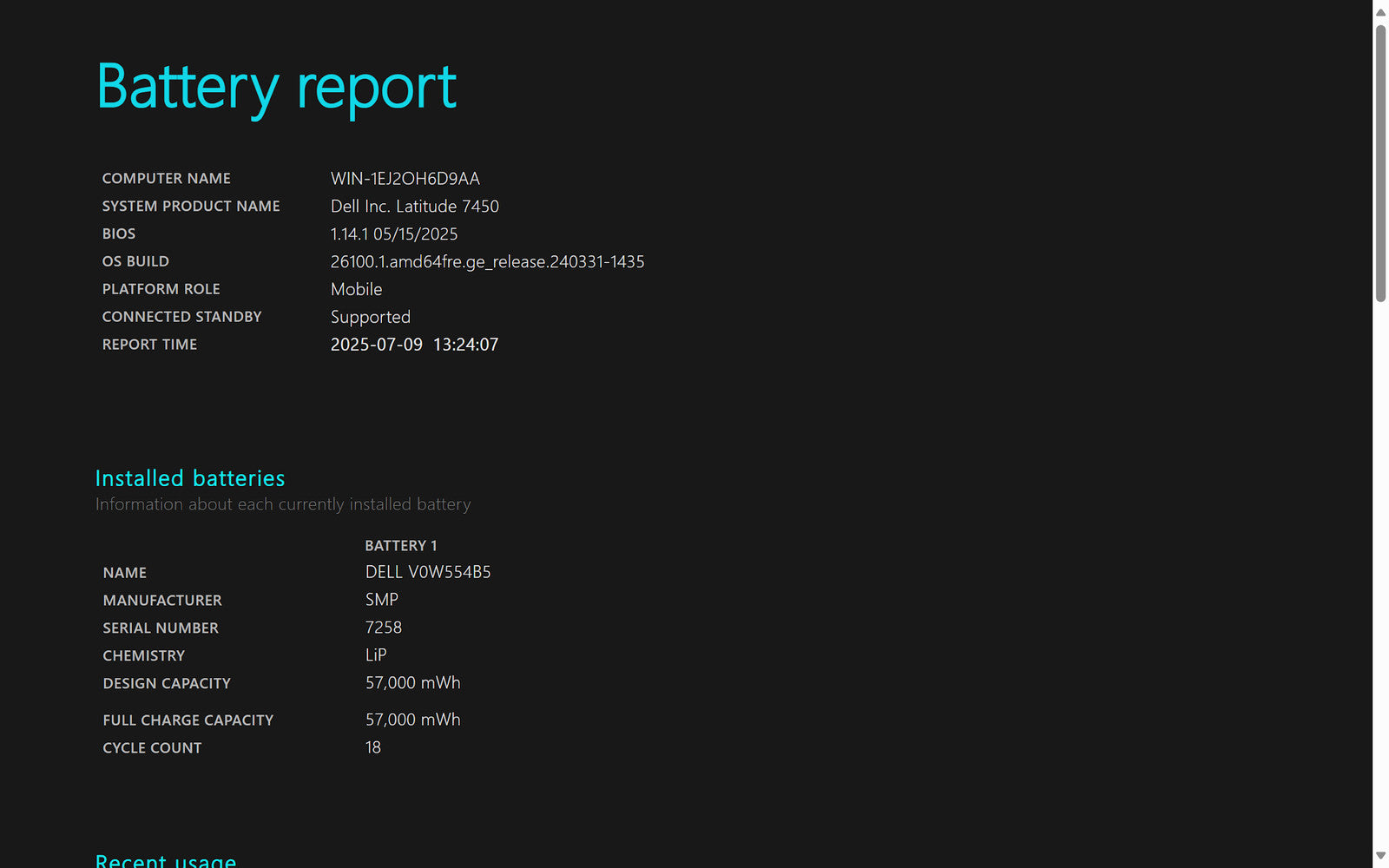 Battery Condition: 57,000/57,000 mWh 100.00%