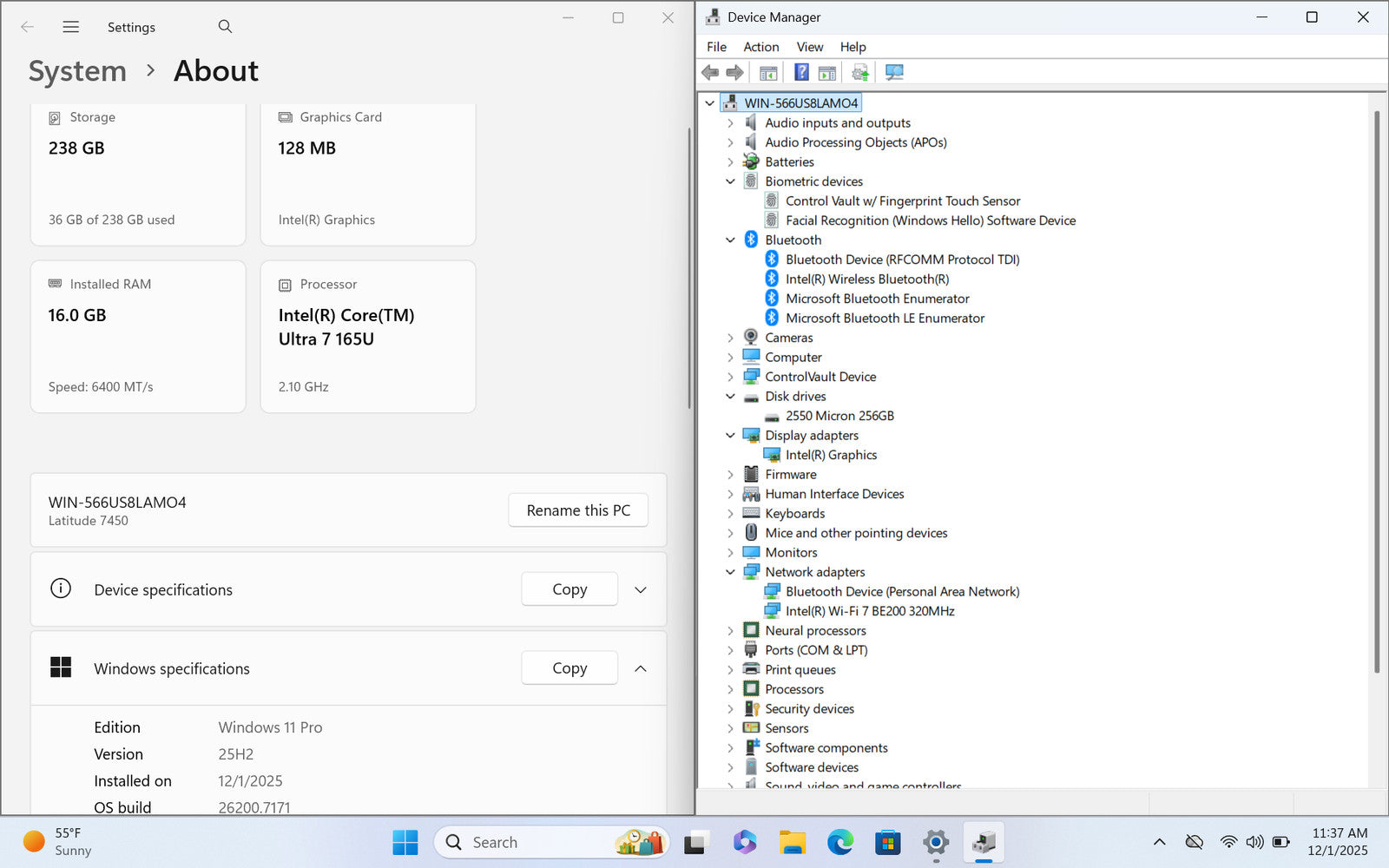 Dell Latitude 7450 14" FHD+ Touch ULTRA 7 165U 256GB SSD 16GB W11P Warranty