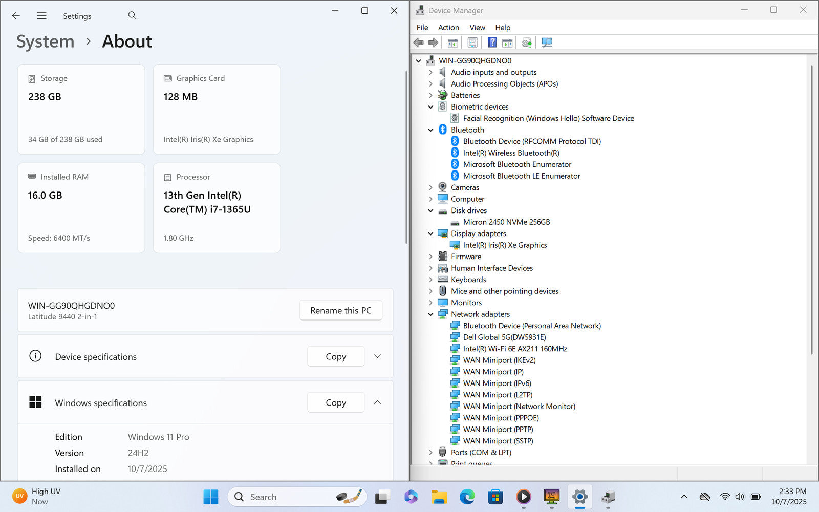 Dell Latitude 9440 2-in-1 14" Touch I7-1365U 256GB SSD 16GB W11P 5G GPS Warranty