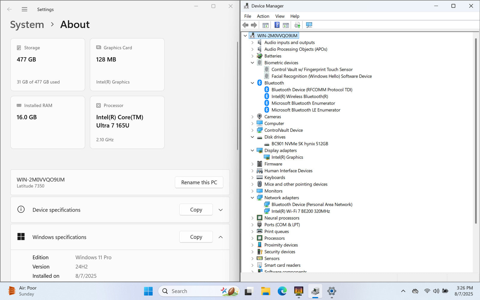 DELL LATTUDE 7350 13" FHD+ Touch ULTRA 7 165U 512GB SSD 16GB W11P Warranty