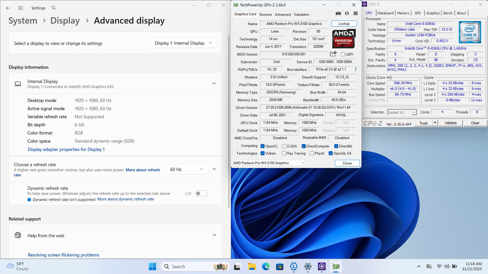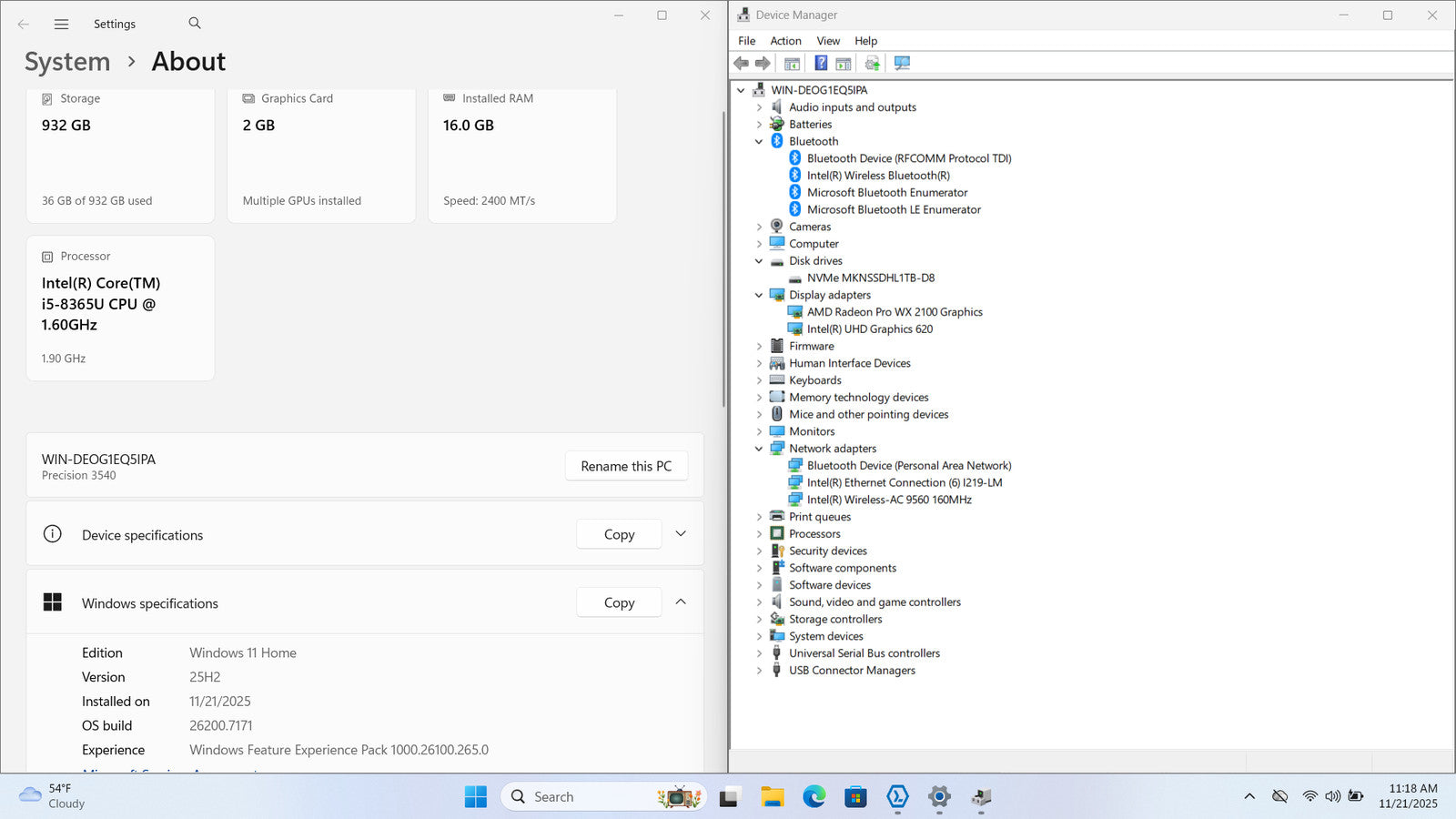 Dell Precision 3540 15" FHD I5-8365U 1TB 16GB W11 AMD Radeon Pro WX 2100 Backlit