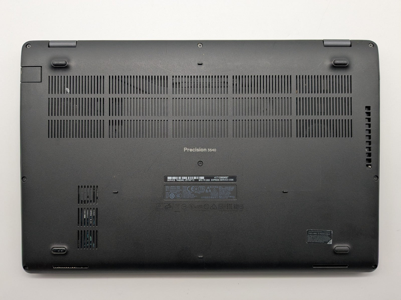 Cosmetic Defects: Interior: Marks on display, nearly invisible during normal use. Rubber around edge of display bezel damaged, large patch missing. Moderate wear on keyboard, heavy wear on touchpad and palm rest. Non-original pointing stick cap installed. Exterior: Moderate wear and visible scratches on lid and bottom cover, scuffed along edges of device. Discoloration patch on bottom cover, one bottom cover foot missing. Cracked next to USB-C port.