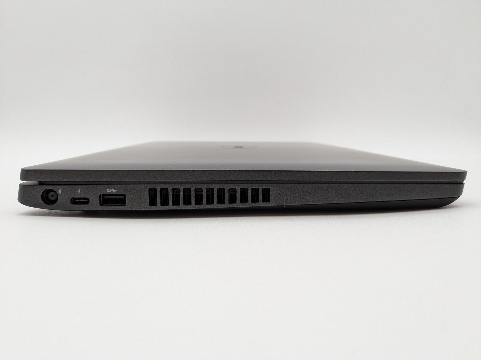 Cosmetic Defects: Interior: Bezel has visible scratch. Palm rest has visible scuffs/scratch. Exterior: Top cover has small visible scratches. Bottom cover has moderate scuffs, minor scratches, and a chipped back corner.
