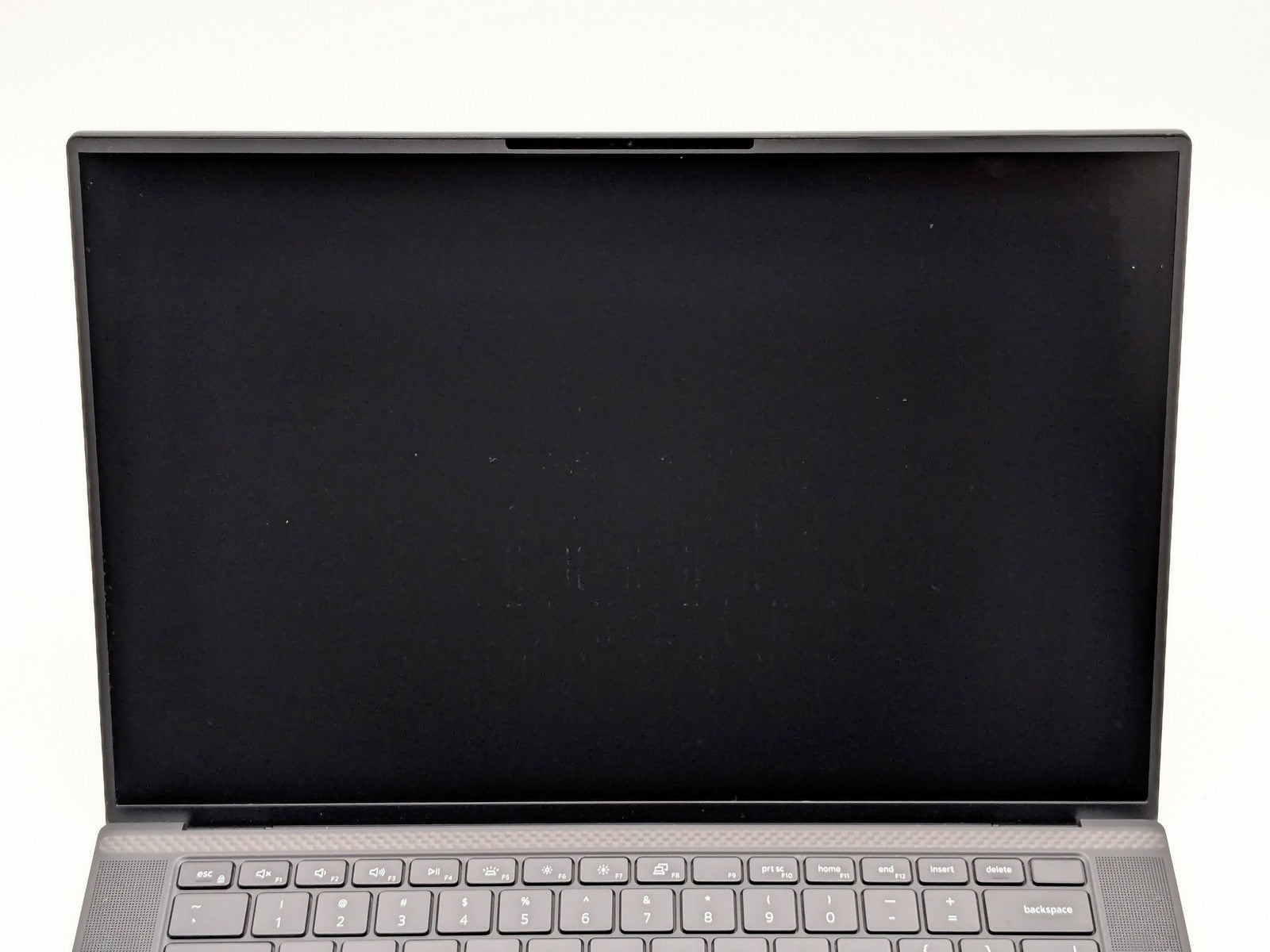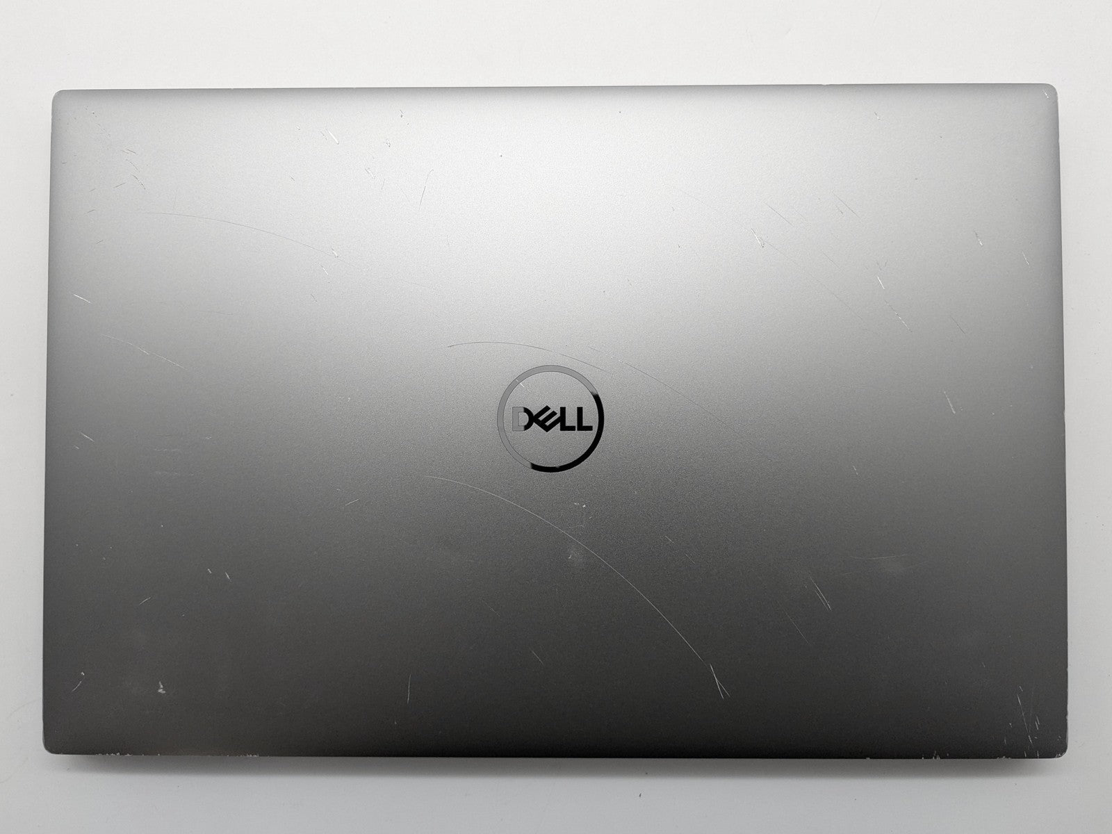 Cosmetic Defects: Interior: Display has visible scratches and keyboard imprinting. Light to moderate wear on keyboard and touchpad, residue and scratches on palmrest, with heavy residue visible in mesh accents. Exterior: Dents, heavy scratches and chips on top cover and edges, especially around I/O ports. Dents on corners and scratches on bottom cover.