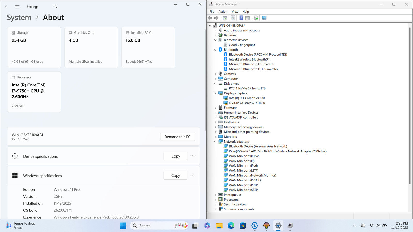 DELL XPS 15 9560 15" FHD I7-9750H 1TB SSD 16GB W11P GeForce GTX 1650 Webcam
