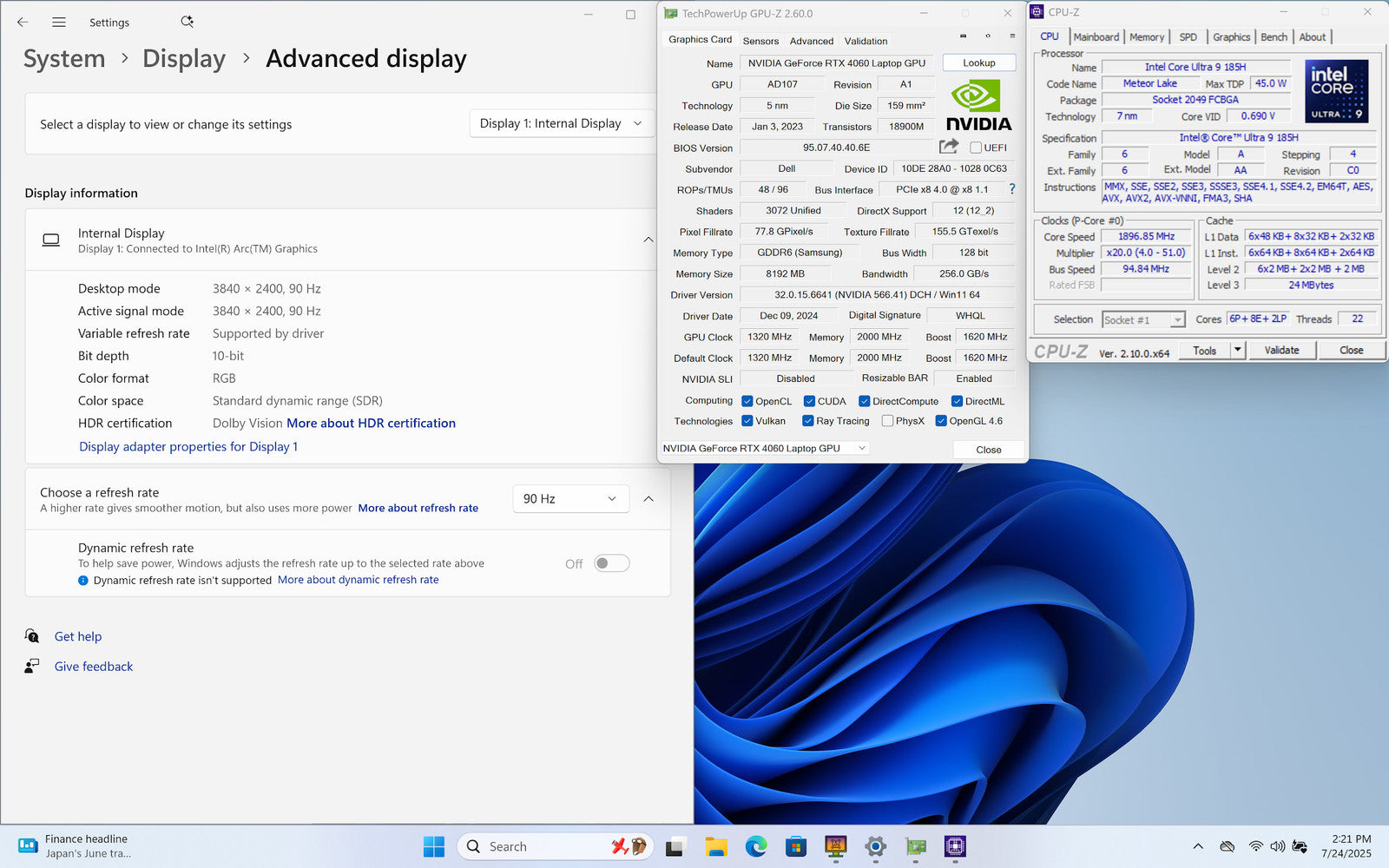 DELL XPS 9640 16" UHD+ 4K Touch ULTRA 9 185H 1TB 32GB W11 RTX 4060 90Hz Warranty