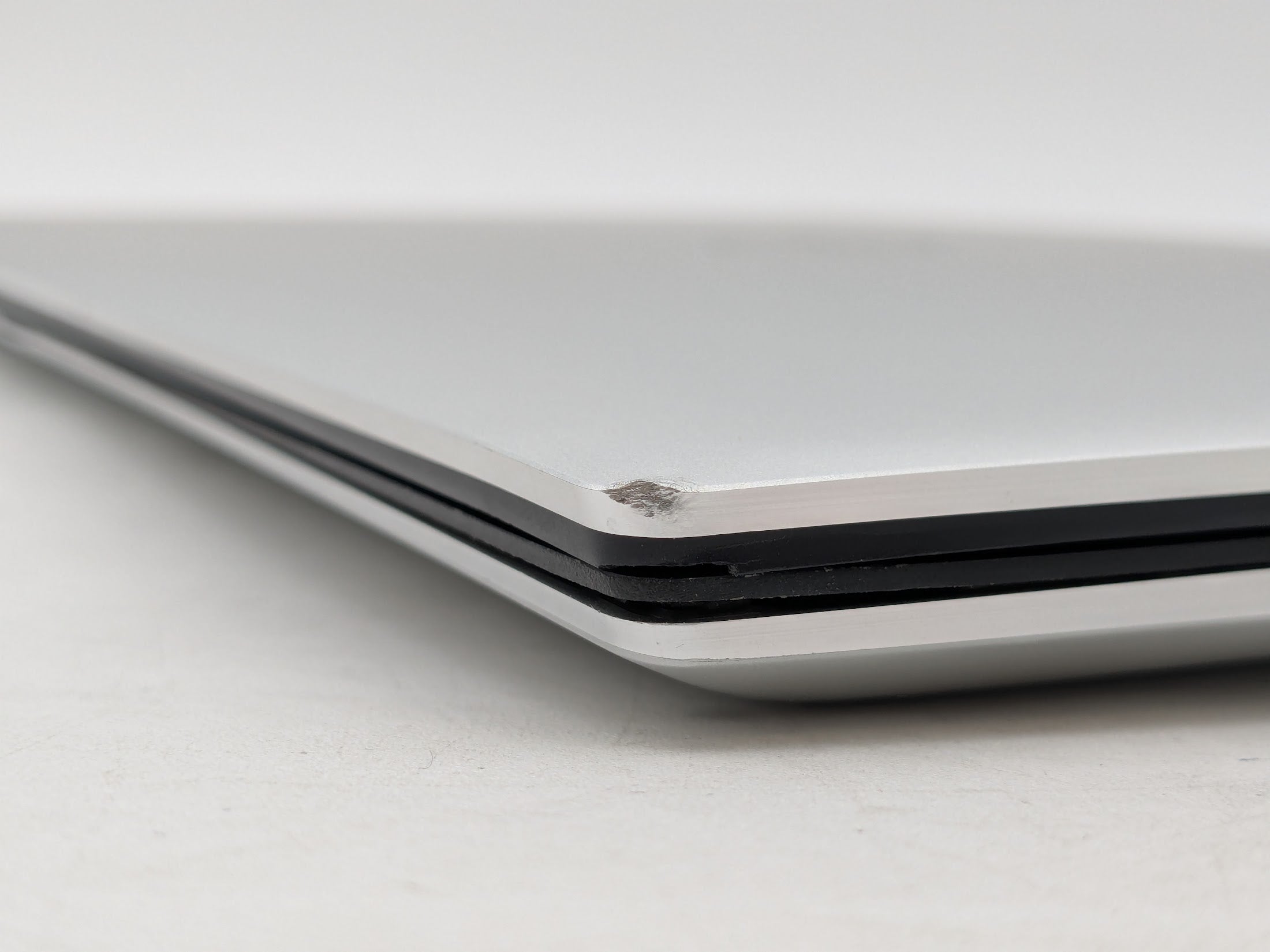 Cosmetic Defects: Interior: Marks on display, invisible during normal use. Light wear on keyboard, touchpad, and palm rest. Bezel chipped on top-right corner. Exterior: Minor wear and light scratches on lid, bottom cover, and along edges of device. Right side corner of lid dented.