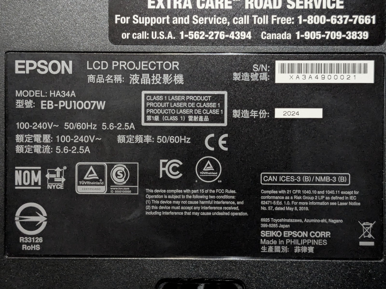 EPSON LASER PROJECTOR EB-PU1007W HOURS 616