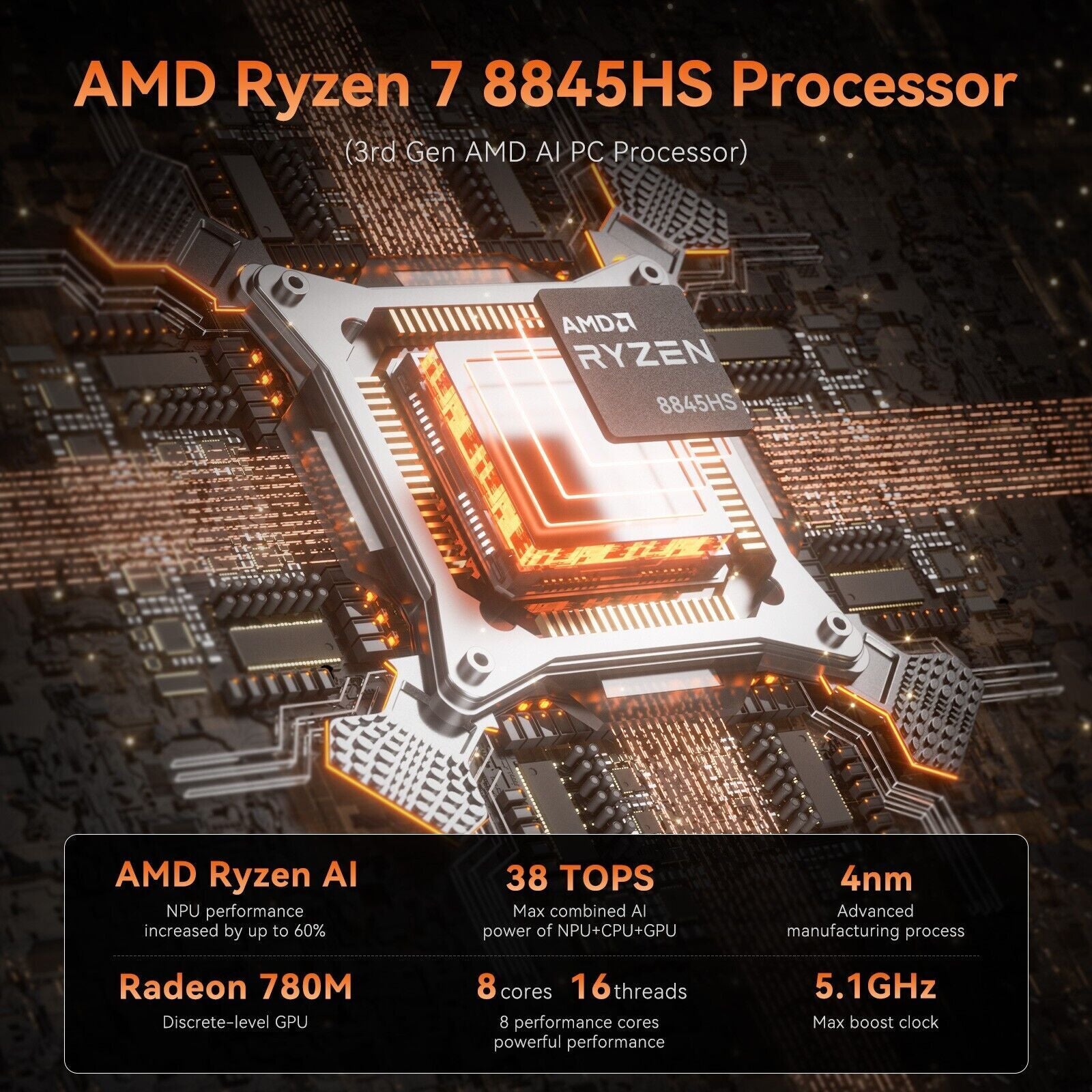 GEEKOM AX8 Pro Mini PC, AMD Ryzen 7 8845HS, 32GB RAM DDR5, 1TB SSD, Win 11 Pro