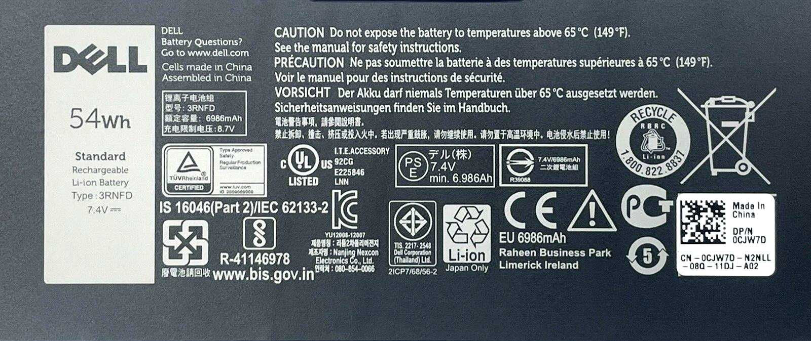 Genuine Dell Latitude E7440 E7450 Laptop Battery 47Wh 7.4 V 34GKR G95J5 3RNFD