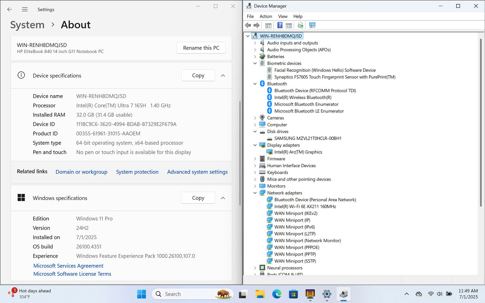 HP EliteBook 840 G11 14" FHD+ ULTRA 7 165H 1TB SSD 32GB W11P Webcam Warranty
