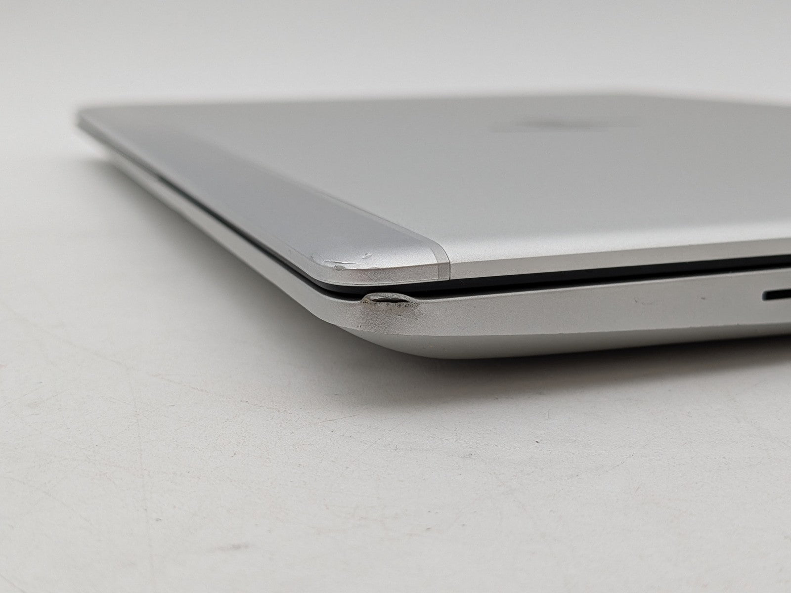 Cosmetic Defects: Interior: Bezel has minor wear. Keycaps and touchpad buttons have moderate wear. Palmrest front right corner has visible dent. Exterior: Top cover has dented front corners. Bottom cover has heavy scratches and scuffs, dents in back corners.