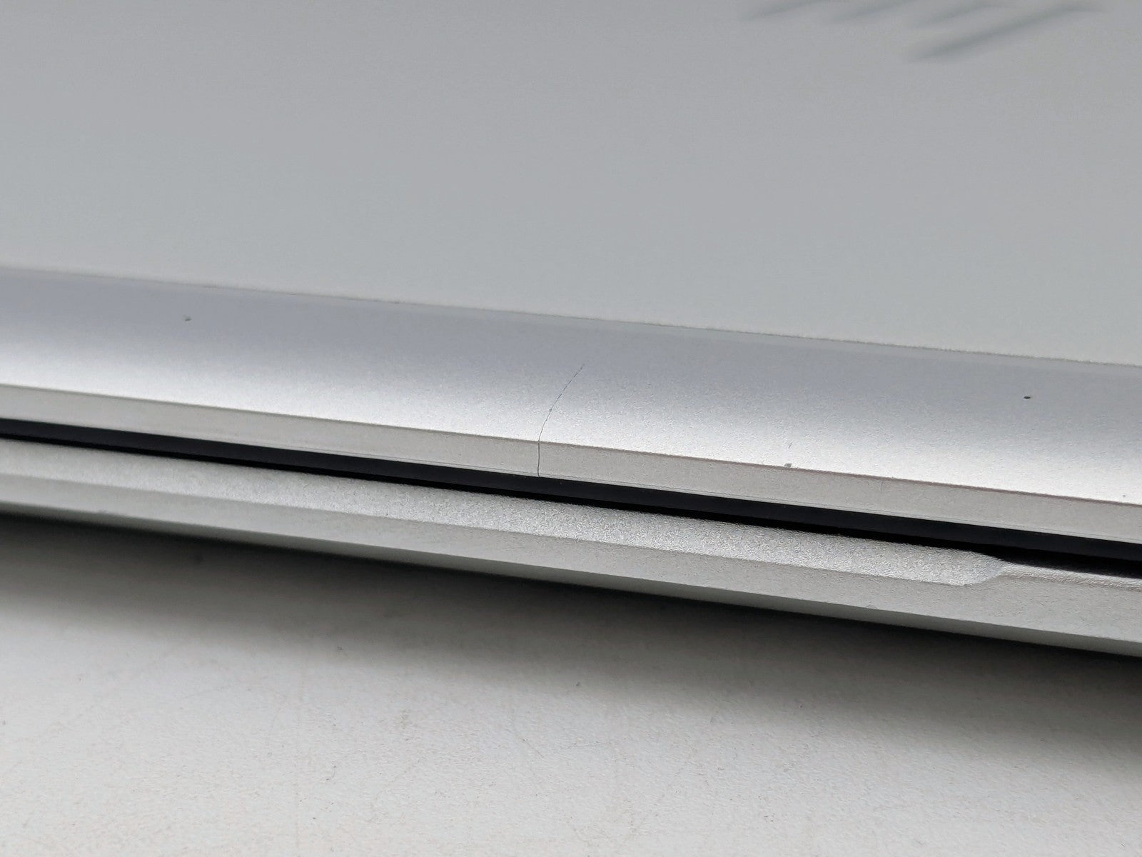 Cosmetic Defects: Interior: Display has visible keyboard imprinting. Minor scuffs on palmrest and touchpad buttons. Exterior: Both covers have small visible scratches and visible edge wear. Top cover has small dent. Bottom cover has edge chipping. Display assembly hinge mounts are loose.