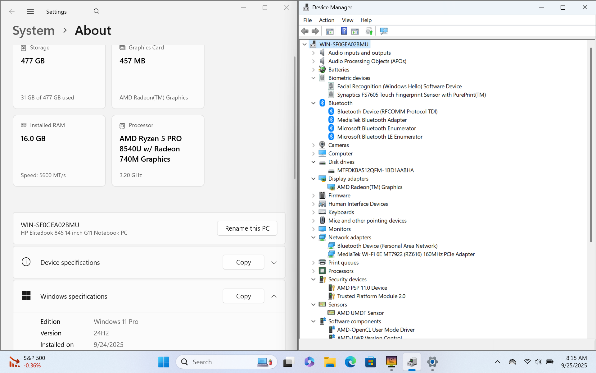 HP EliteBook 845 G11 14" FHD+ RYZEN 5 PRO 8540U 512GB 16GB W11P Backlit Warranty