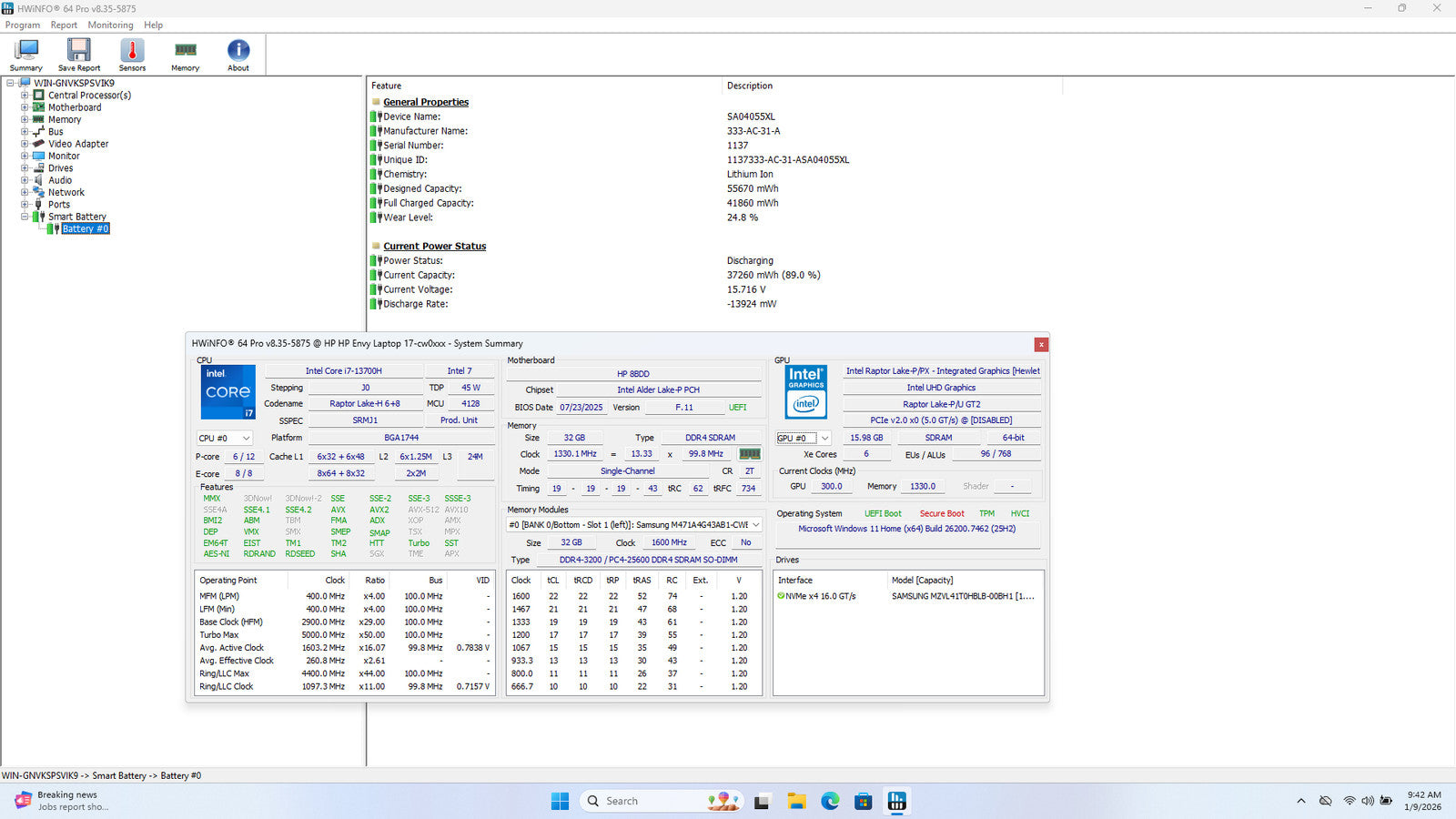 Battery Condition: 41,860/55,670 mWh 75.19%