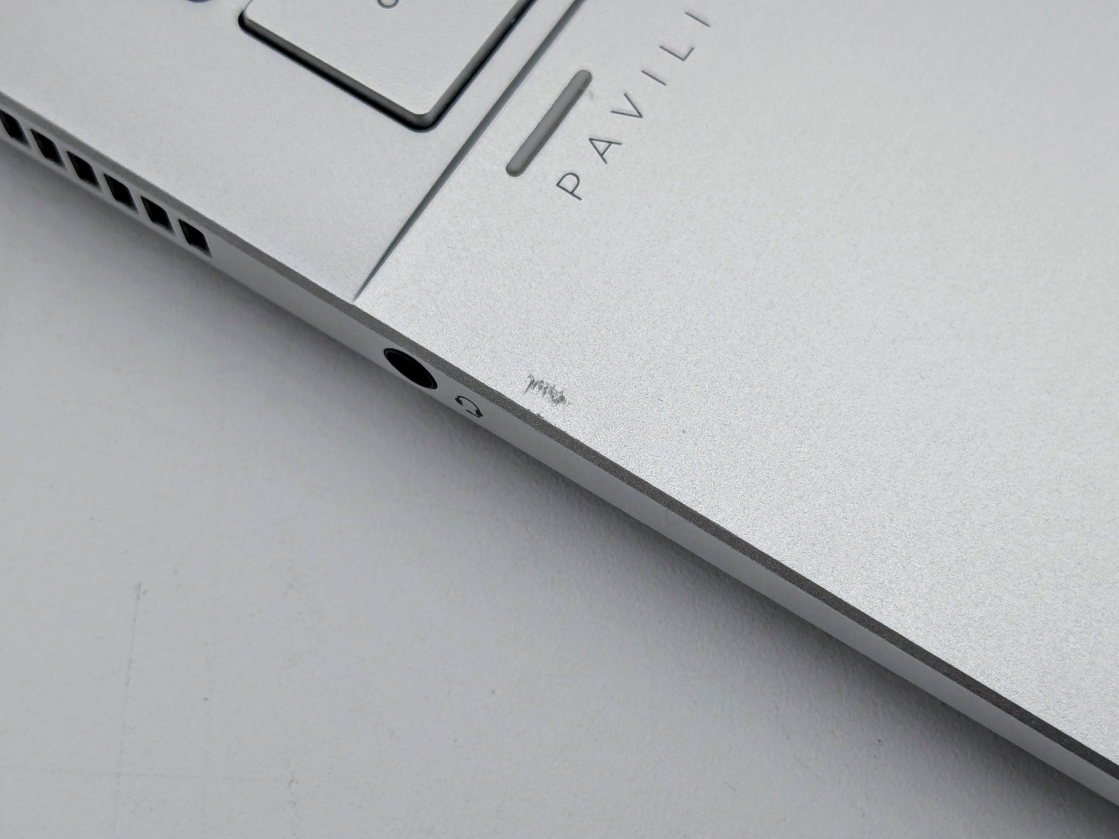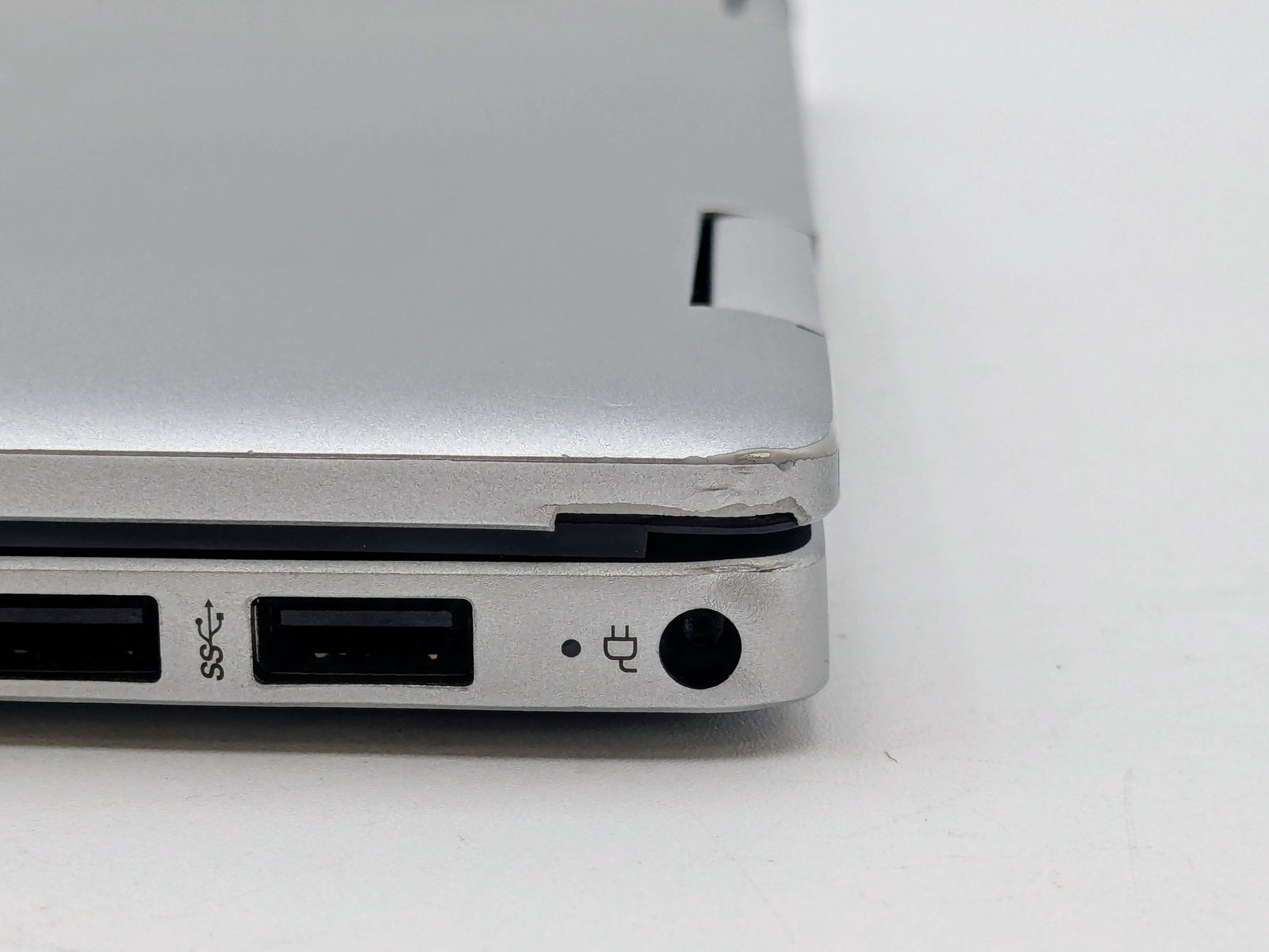 Cosmetic Defects: Interior: Light wear on keyboard, small scratches on palm rest. Exterior: Light wear and small visible scratches on lid, scuffed along edges. Rubber near right-side hinge missing/damaged. Visible wear and scratches on bottom cover.