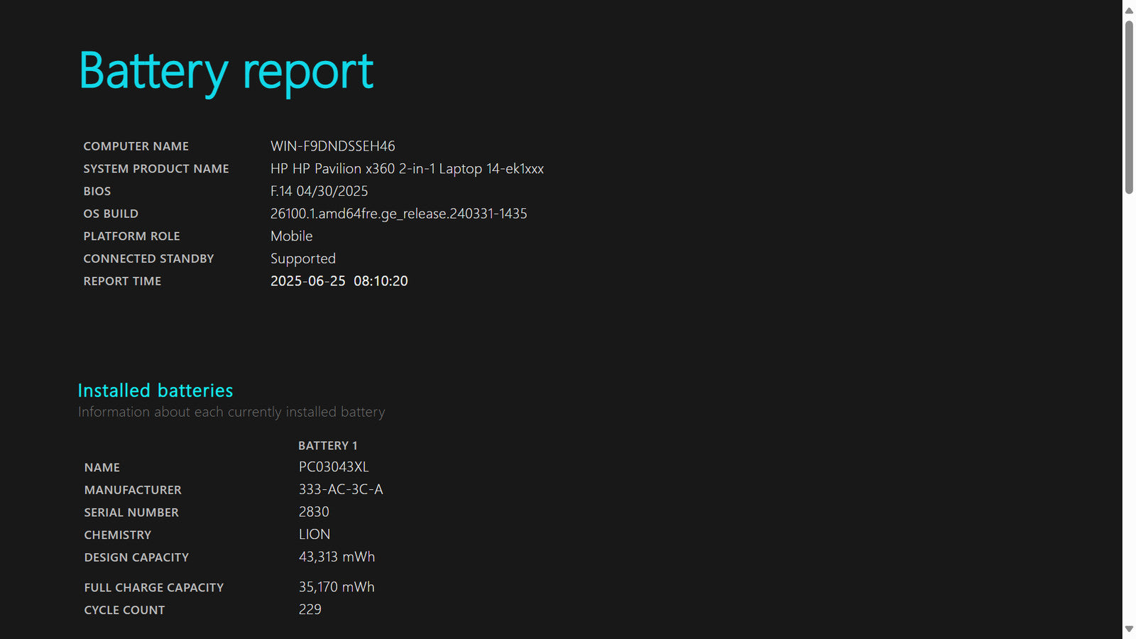 Battery Condition: 35,170/43,313 mWh 81.20%