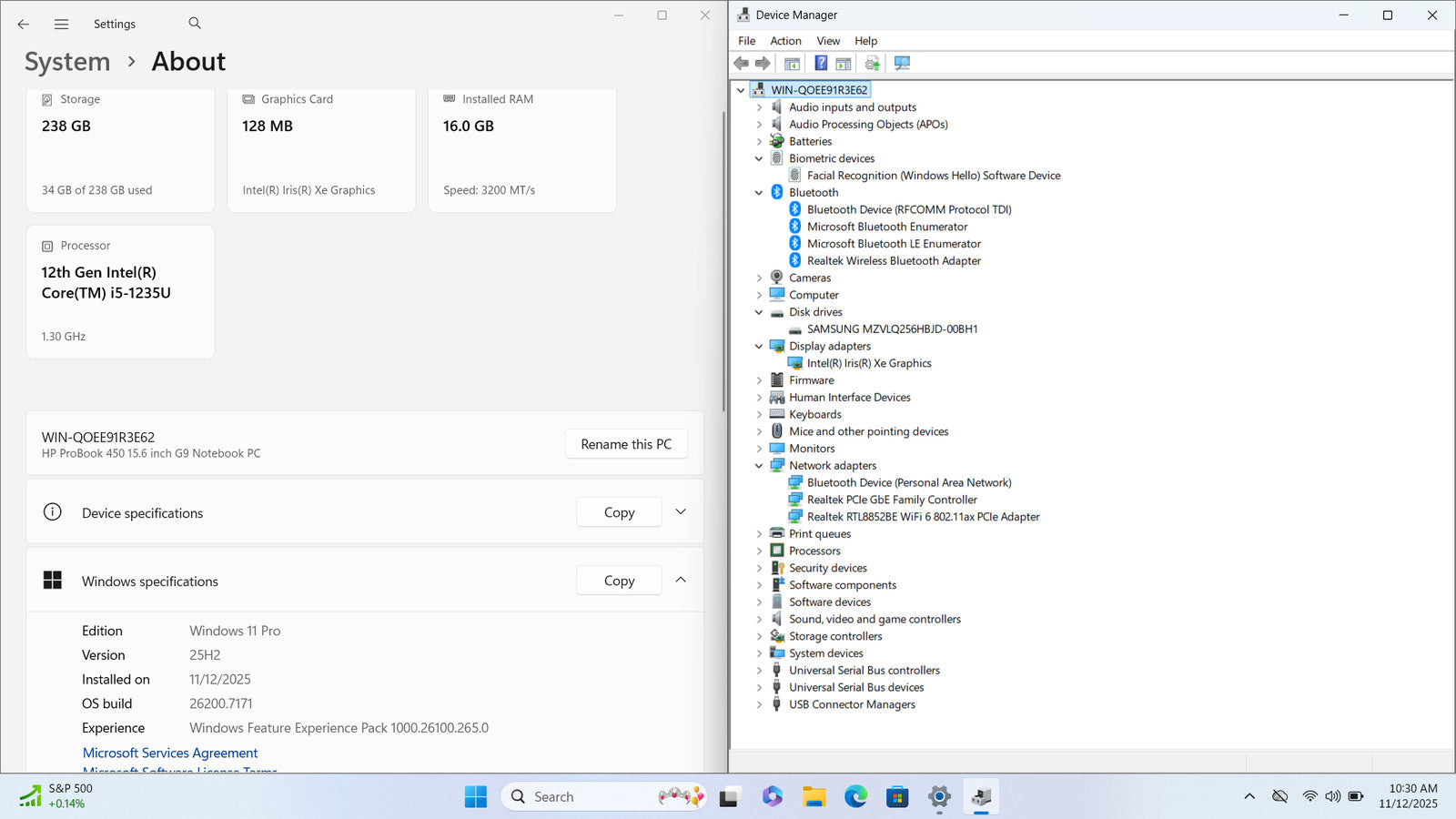 HP ProBook 450 G9 15" FHD Touch I5-1235U 256GB SSD 16GB W11P Webcam Backlit