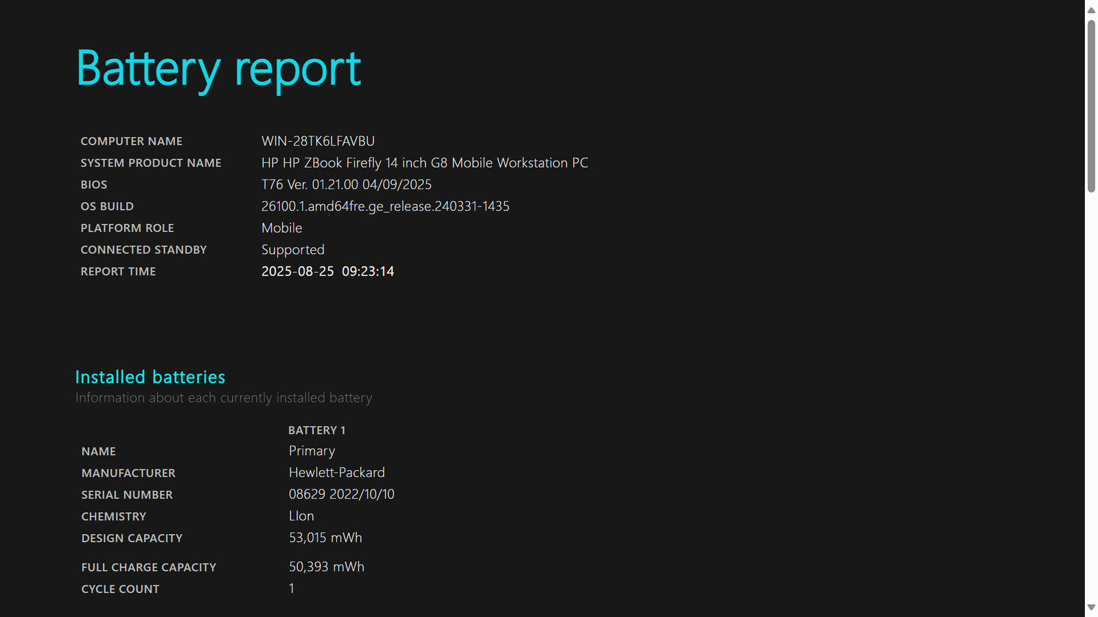 Battery Condition: 50,393/53,015 mWh 95.05%