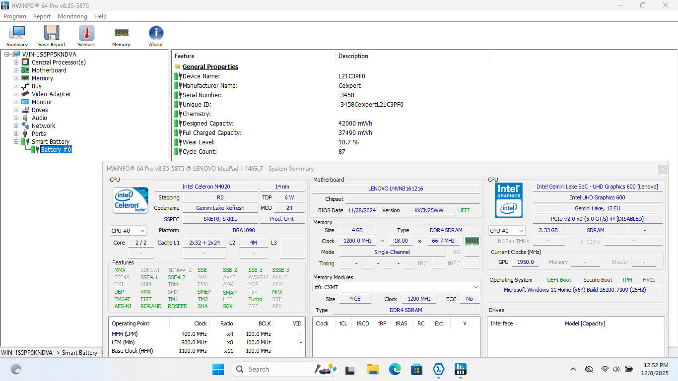 Battery Condition: 37,490/42,000 mWh 89.26%