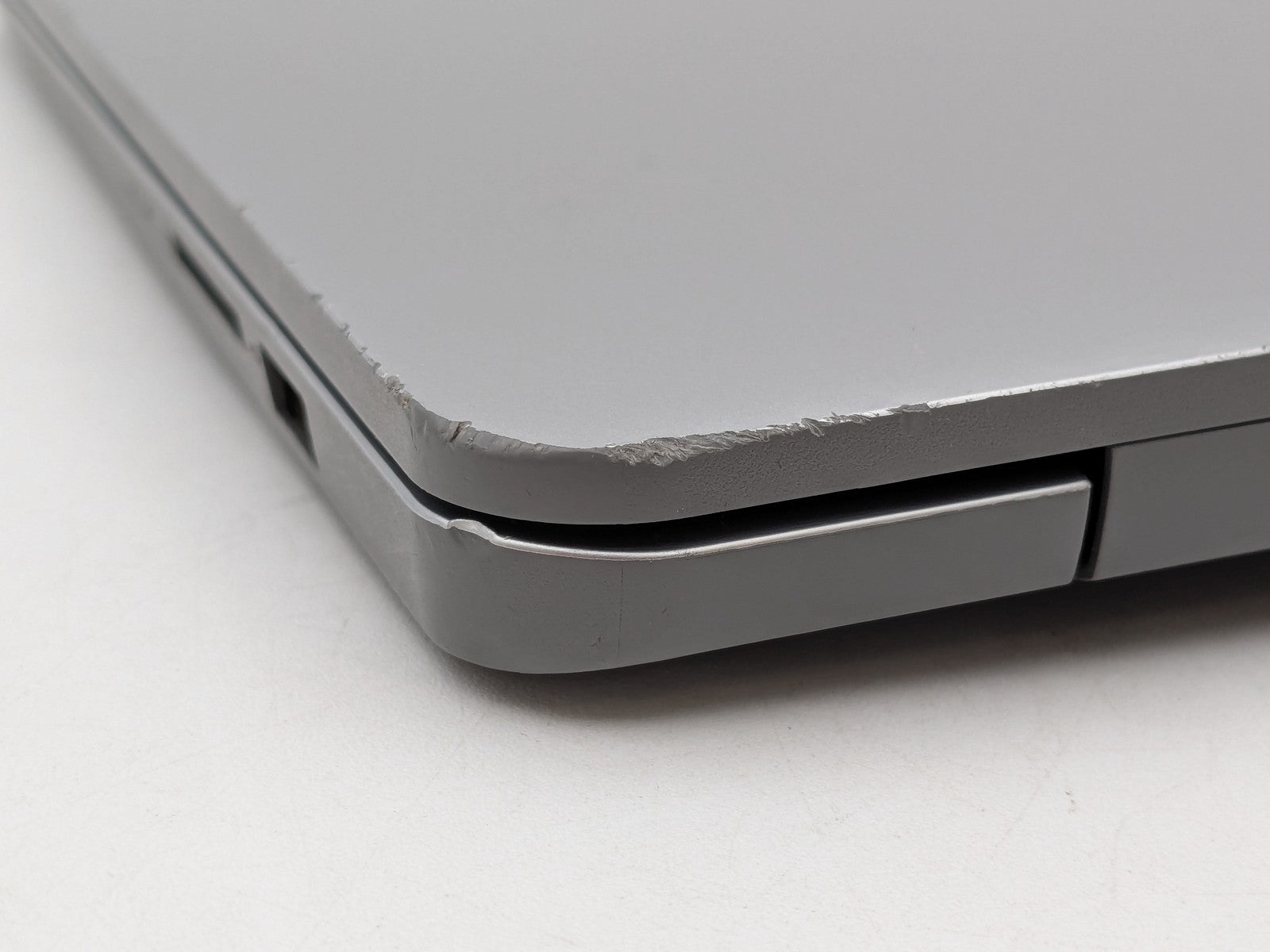 Cosmetic Defects: Interior: Display has visible scuffs, keyboard imprinting, and bright spots. Palmrest has small dents in edges, scratches, and chipped paint. Keycaps have minor wear. Exterior: Both covers have visible scuffs, scratches, and small dents in edges.