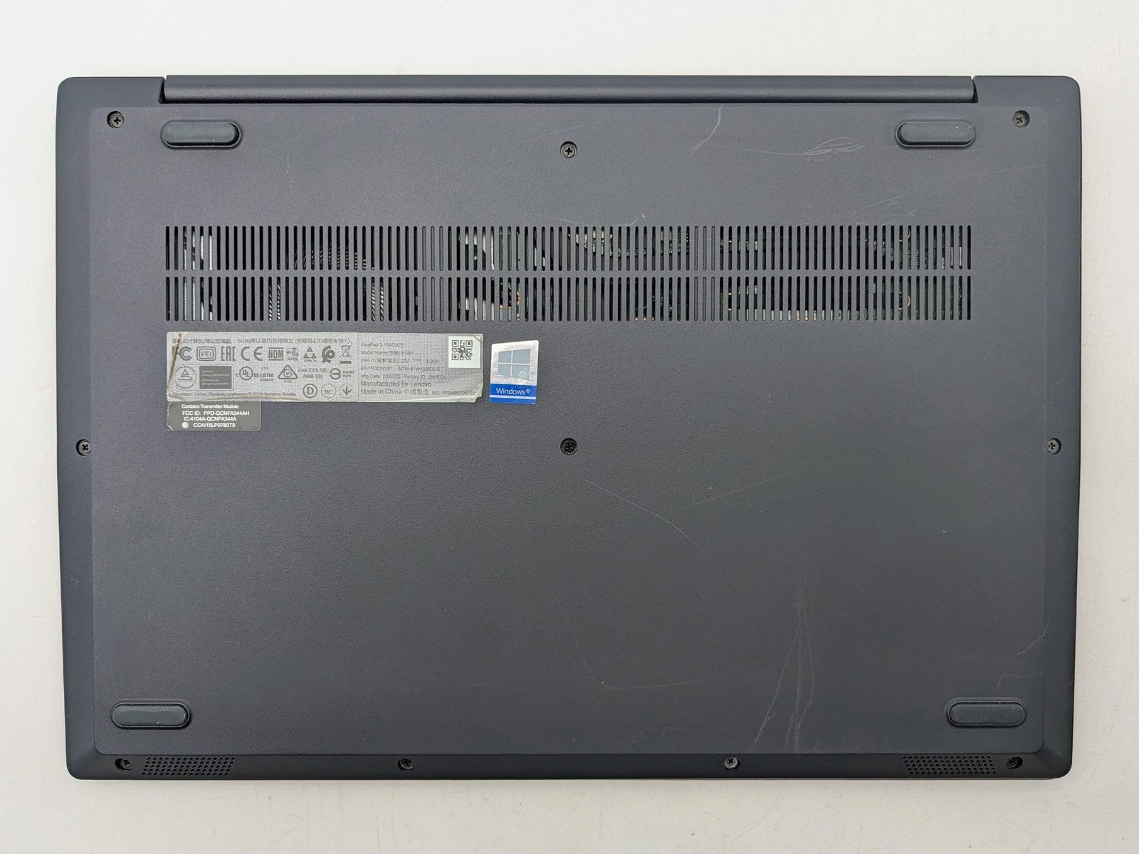 Cosmetic Defects: Interior: Display has visible keyboard imprinting. Keycaps and touchpad have heavy wear. Palmrest has moderate scuffs along edges. Exterior: Top cover has small, visible scratches. Bottom cover has long, shallow scratches.