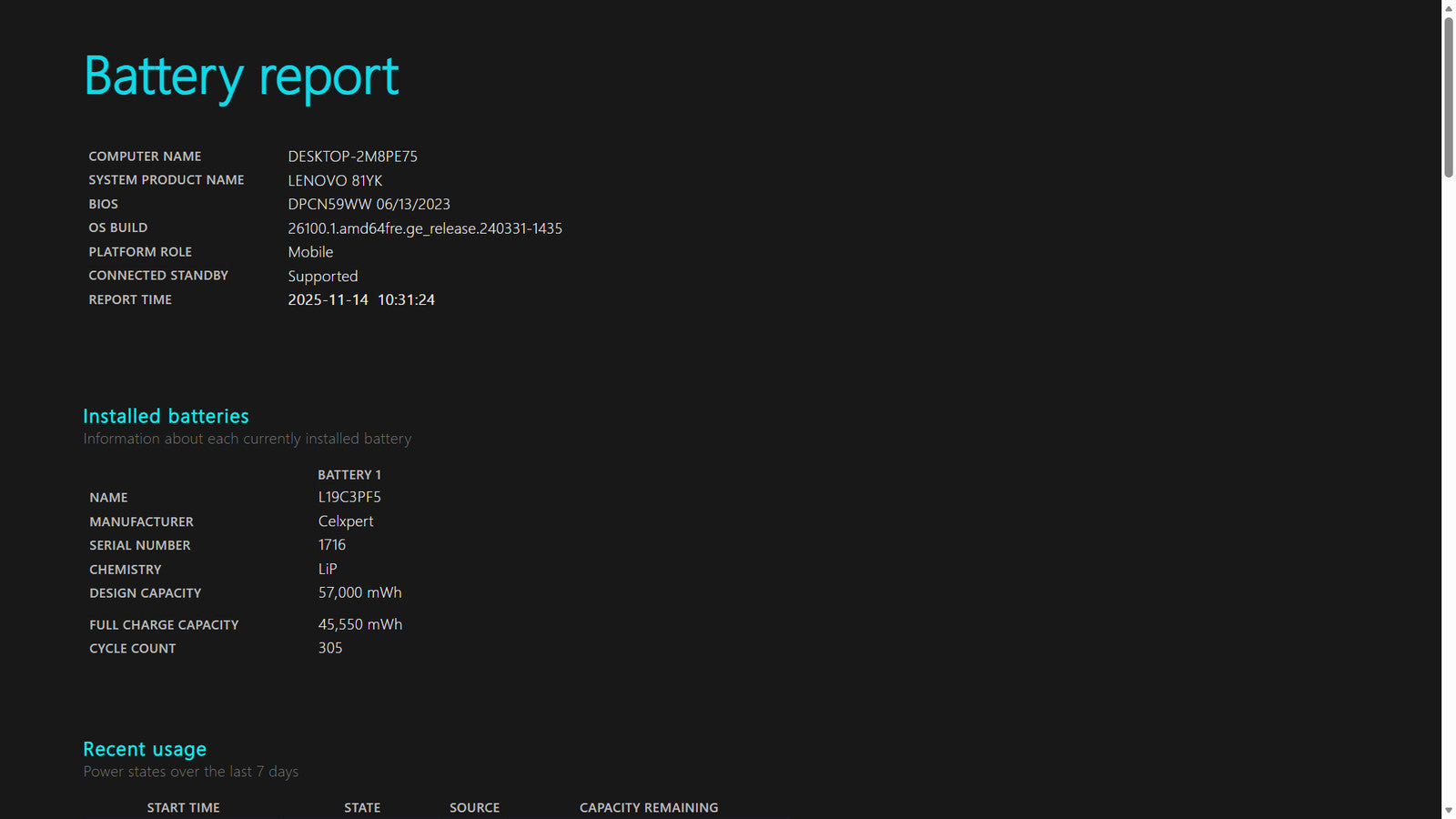 Battery Condition: 45,550/57,000 mWh 79.91%