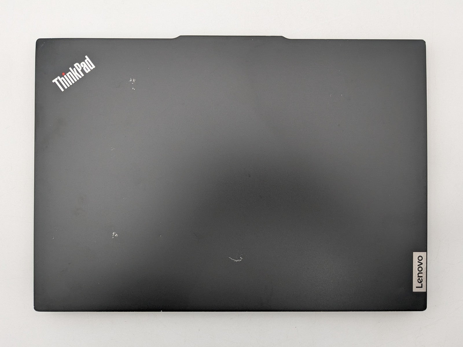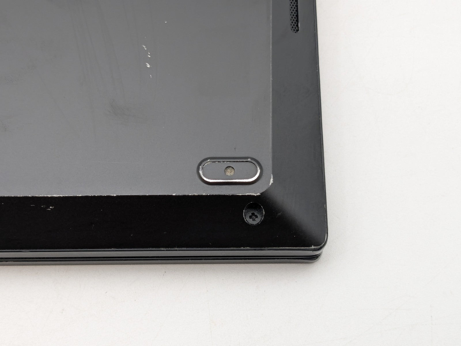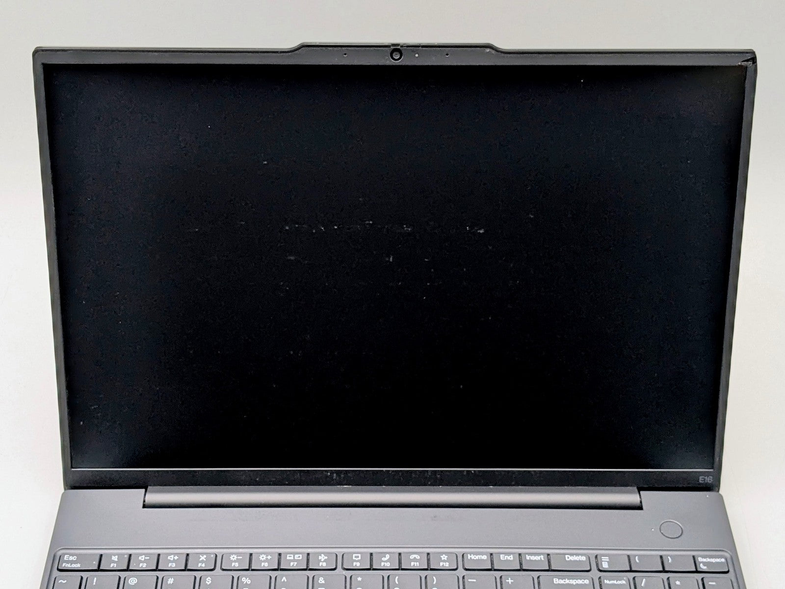 Cosmetic Defects: Interior: Cracks, missing plastic on palmrest. Scuffs and wear on touchpad, keys, and palm rest. Heavy imprinting above keyboard. Display has visible scratches and keyboard imprinting. Cracks and missing plastic on display bezel. Heavy scratching and marks on bezel. Exterior: Dents, scratches, and chipped paint on top, bottom, and sides of unit. Chip and marks covering exterior of unit. Grates on bottom pushed in. Missing plastic in bottom corner. Missing rubber feet on bottom of unit.