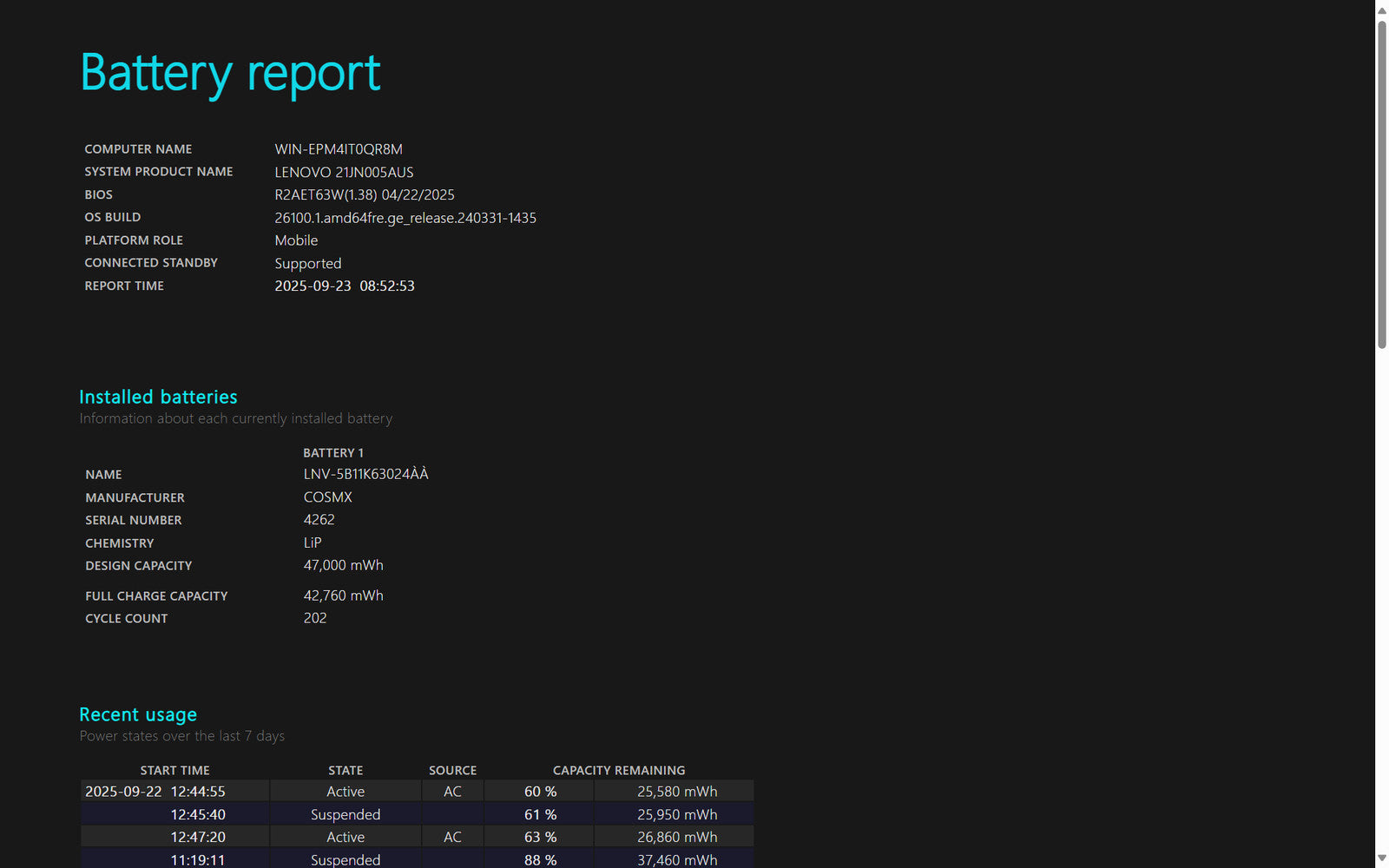Battery Condition: 42,760/47,000 mWh 90.98%