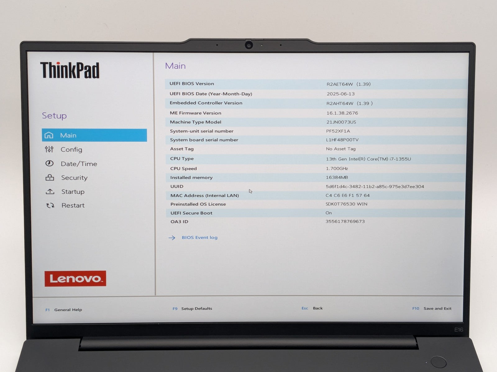 Lenovo ThinkPad E16 Gen 1 16" FHD+ I7-1355U 512GB 16GB W11P Backlit FPR Warranty