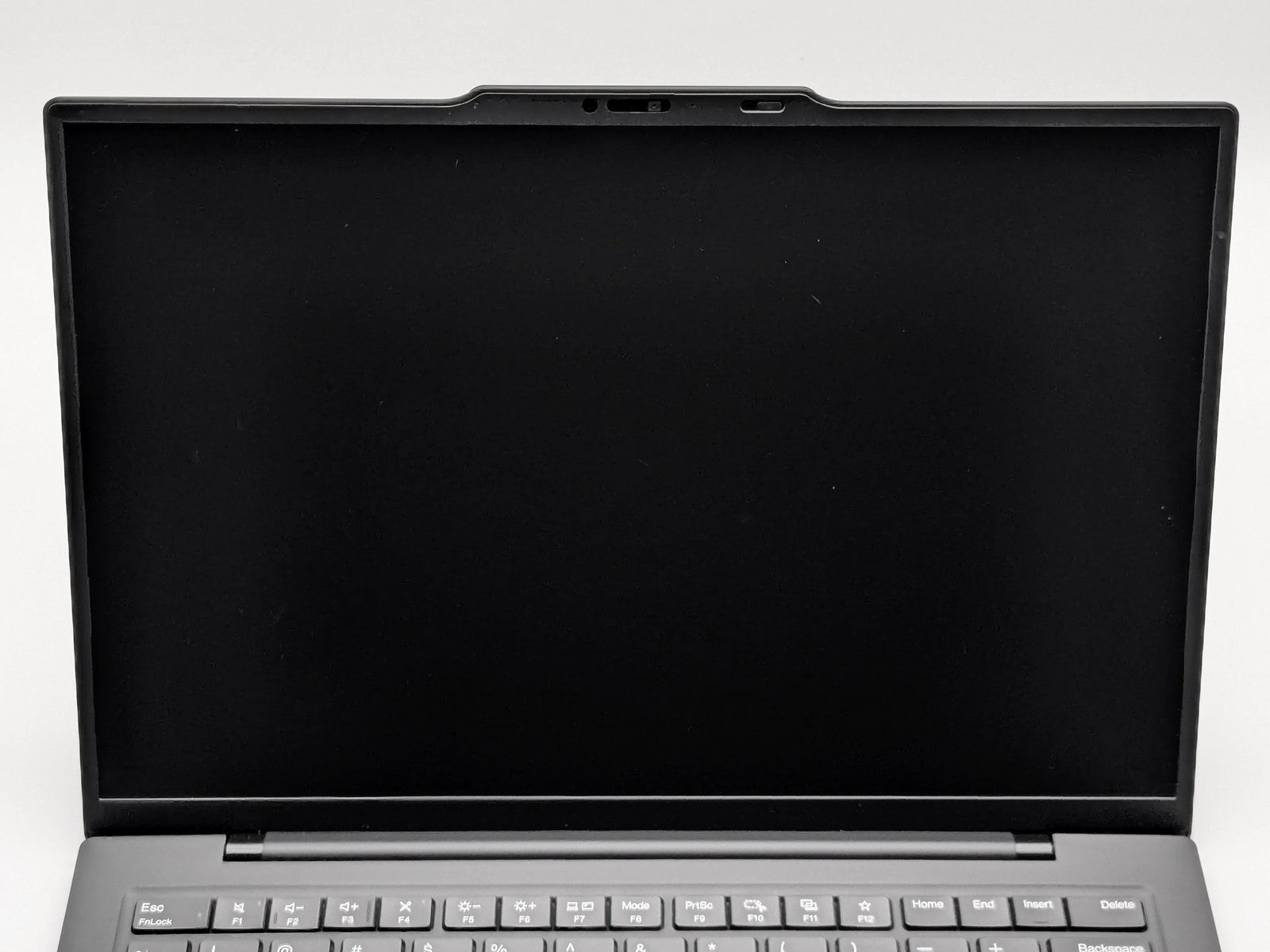Cosmetic Defects: Interior: Display has small light spots in the top left corner, as well as visible scratches and keyboard imprinting. Moderate wear on bezel, keyboard, and palm rest. Minor wear on touchpad. Exterior: Moderate wear and scratches on lid and bottom cover, small patches of chipped paint along edges of device.