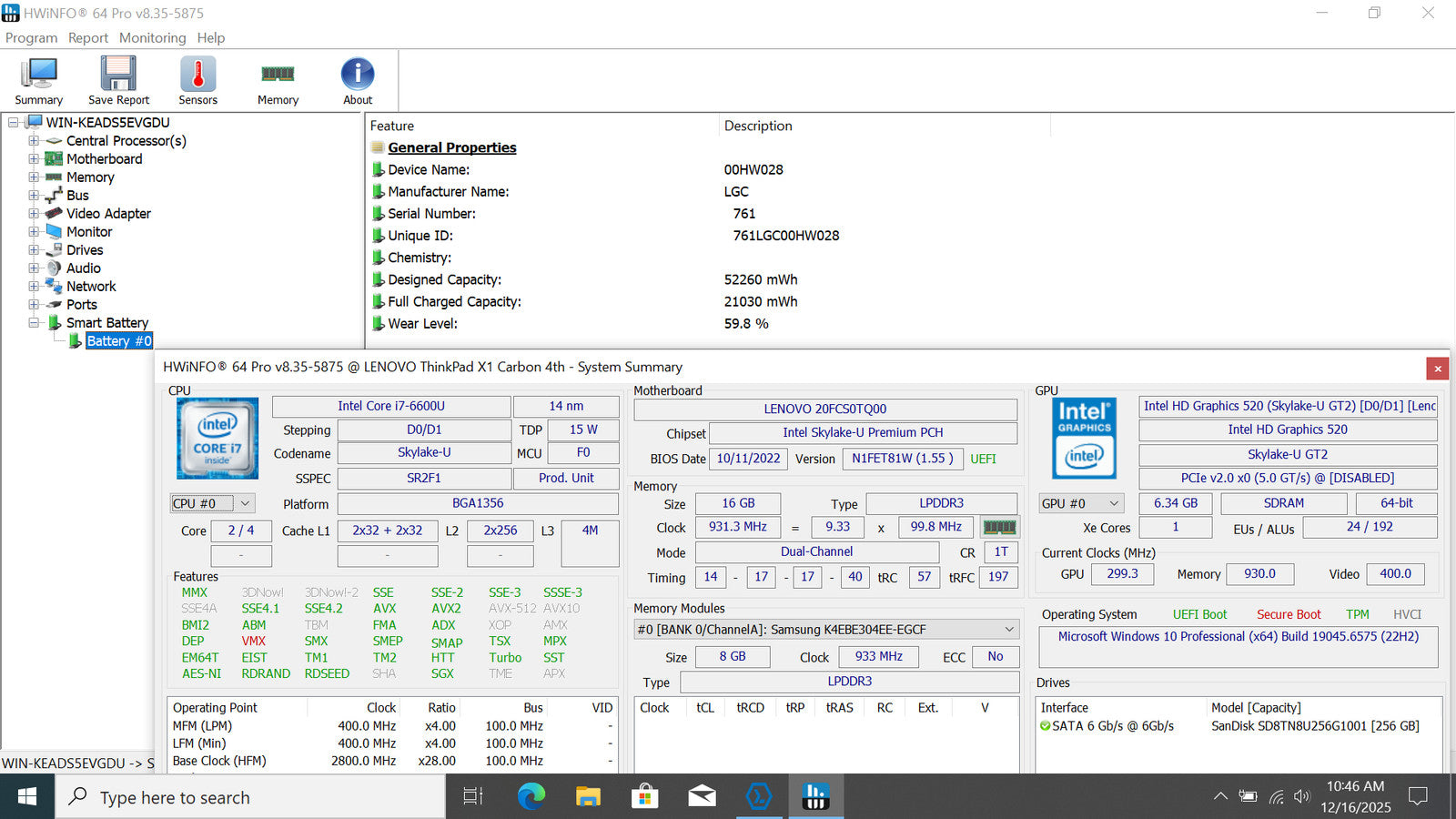 Battery Condition: 21,030/52,260 mWh 40.24%