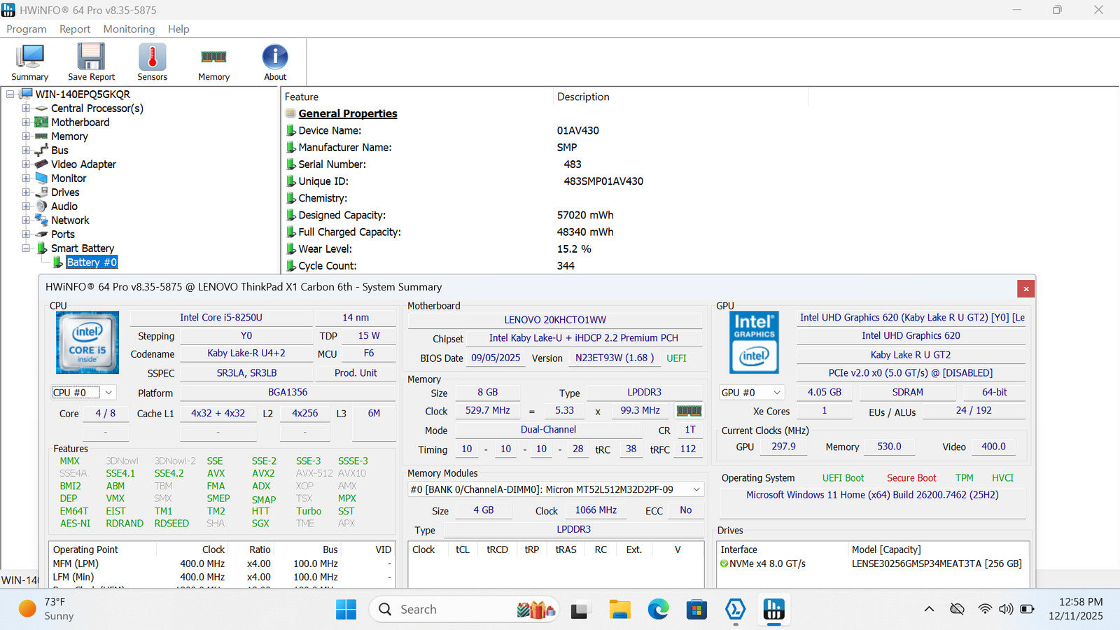 Lenovo ThinkPad X1 Carbon 6th Gen 14" FHD Touch I5-8250U 256GB SSD 8GB W11