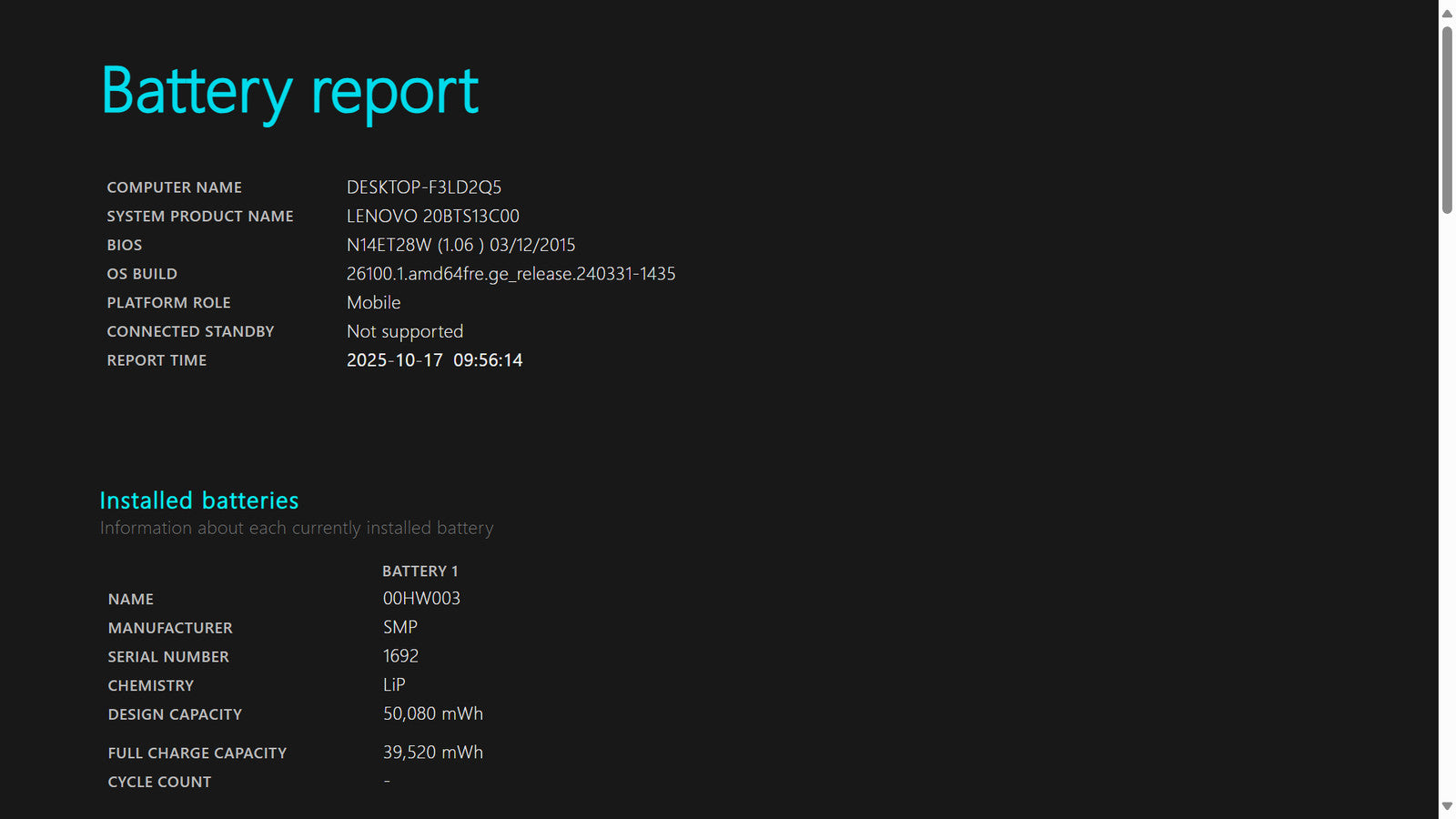 Battery Condition: 39,520/50,080 mWh 78.91%