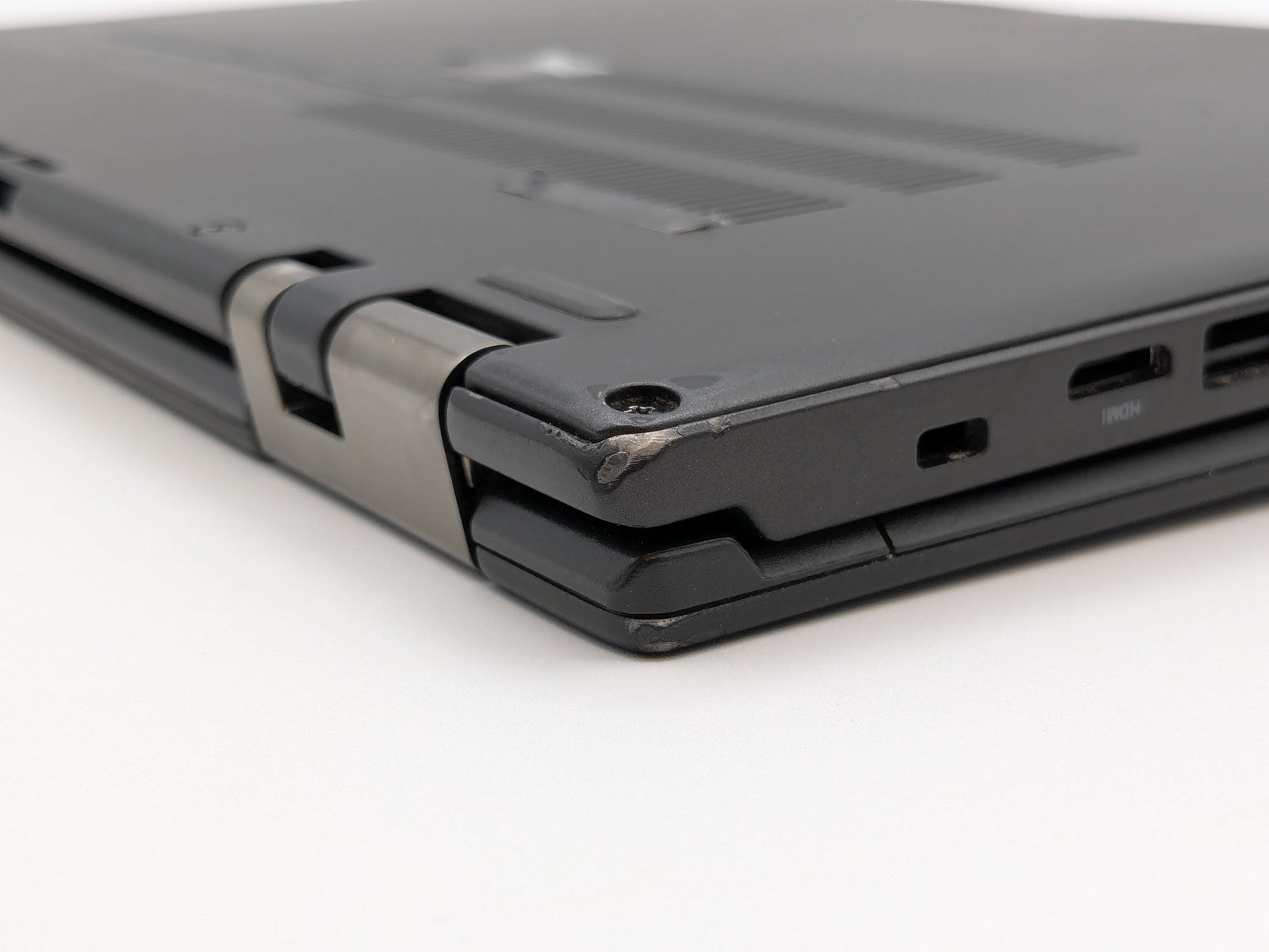 Cosmetic Defects: Interior: Display has visible scratches and/or keyboard imprinting. Heavy wear on keycaps. Palmrest has visible scratches, scuffs, and paint chips. Exterior: Both covers have visible scratches, scuffs, and paint chips. Bottom cover has heat damage.