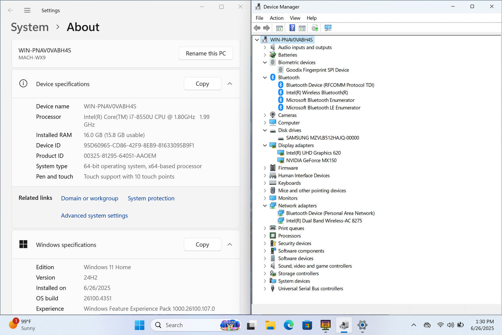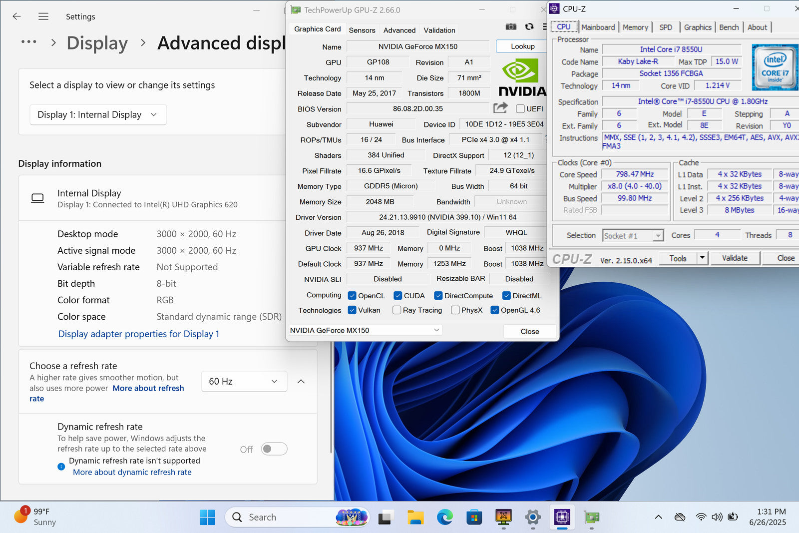 Matebook X Pro 14" Touch I7-8550U 512GB SSD 16GB W11 MX150 Backlit FPR