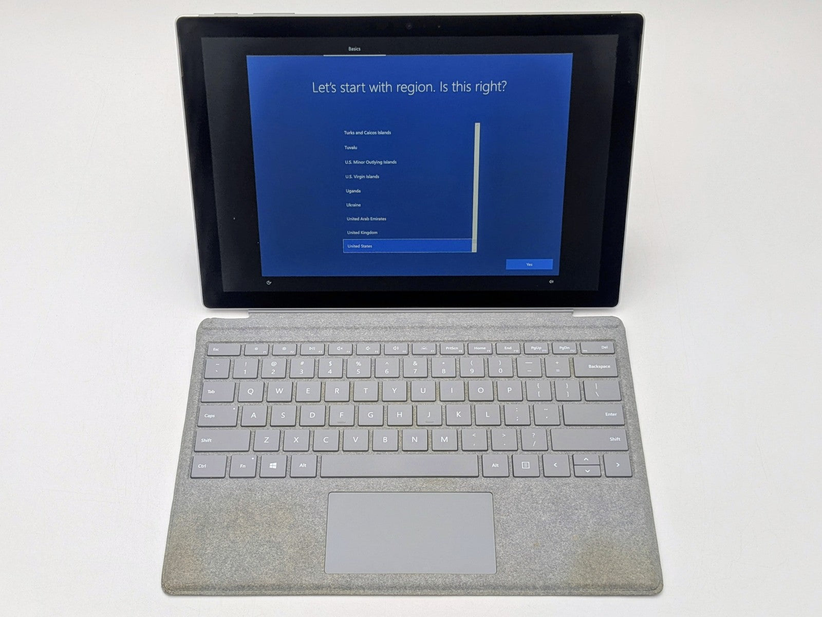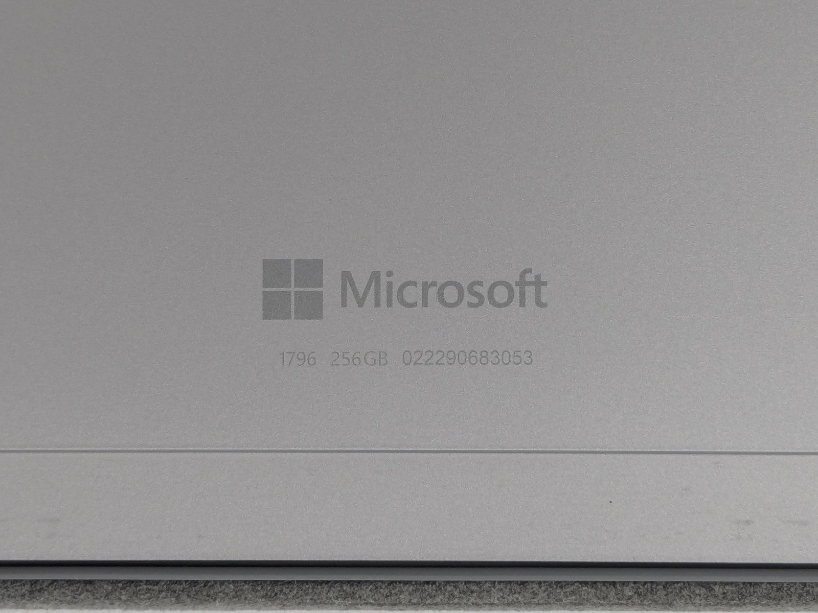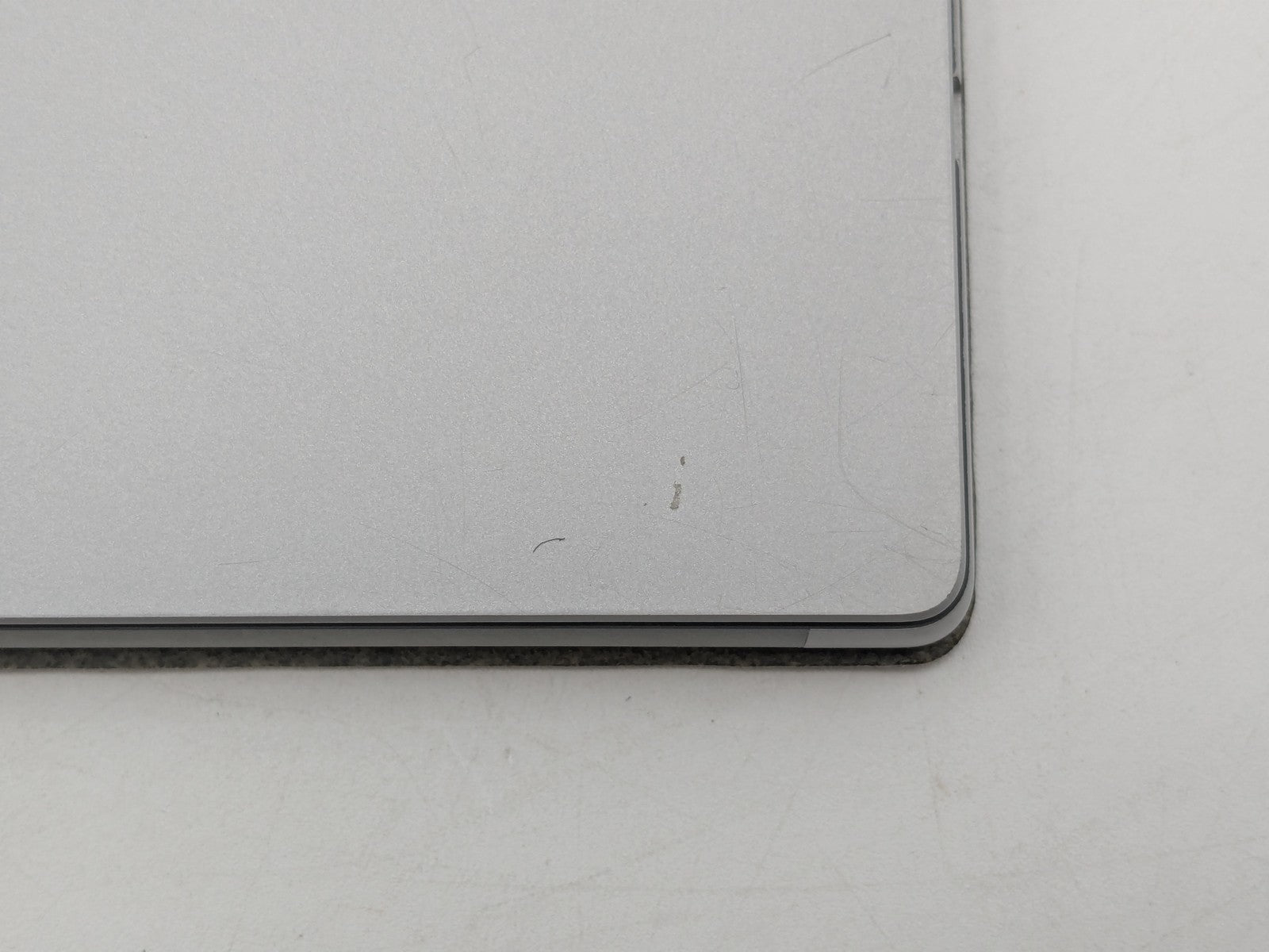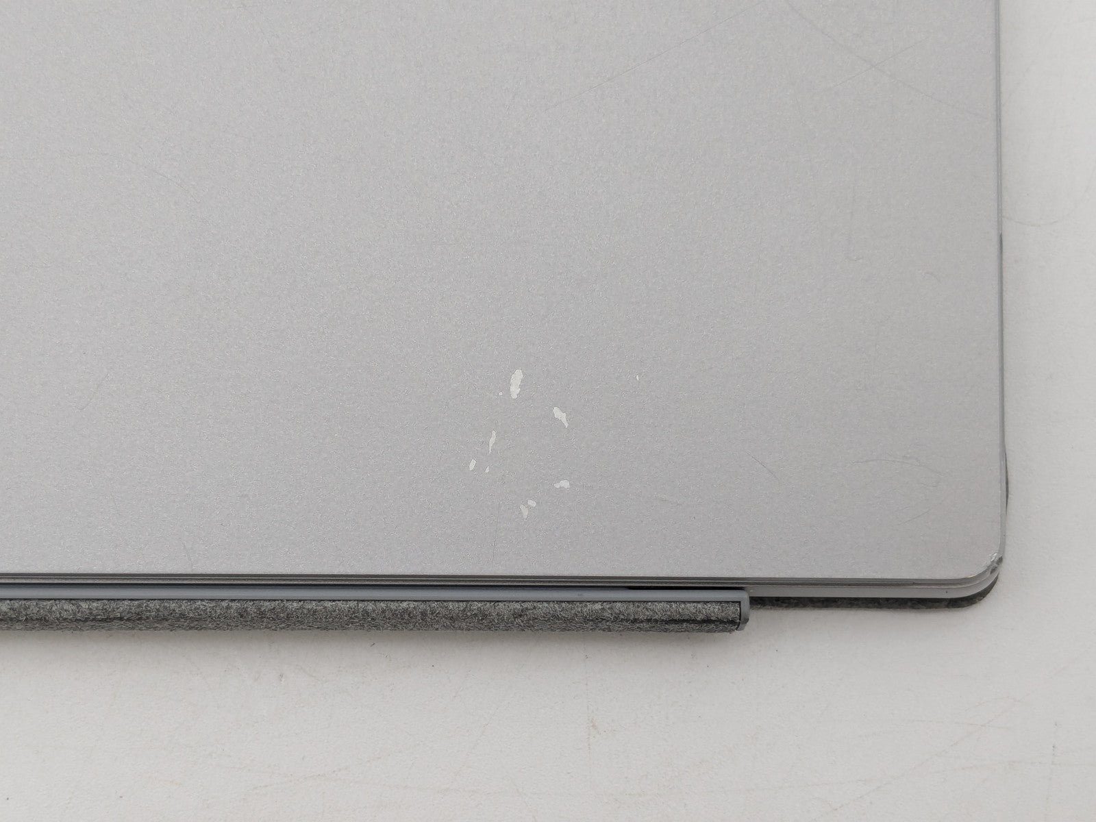 Cosmetic Defects: Tablet: Display has visible keyboard imprinting. Backlight bright spots. Keyboard connector has friction wear. Back cover and kickstand have mismatched screw, small paint chips, visible scuffs, and scratches. Keyboard: Keycaps have heavy wear. Cloth surfaces have staining and wear on edges.