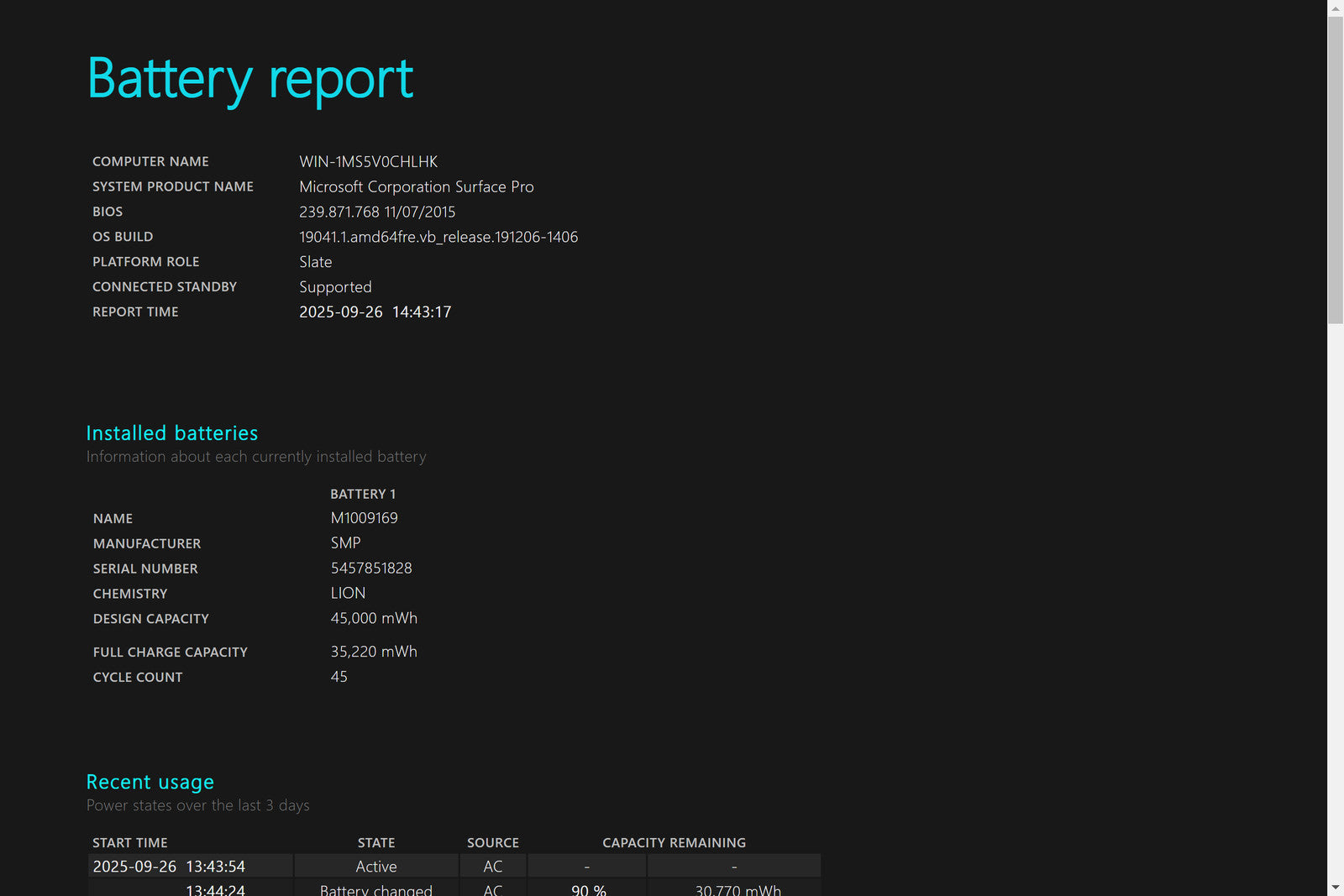 Battery Condition: 34,090/45,000 mWh 75.76%
