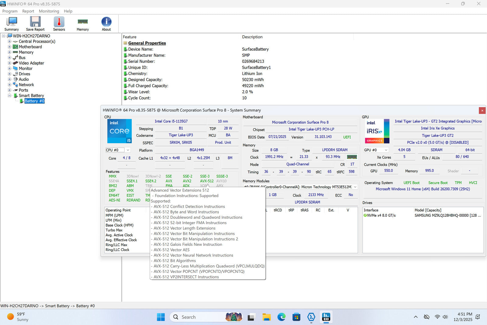 Microsoft Surface Pro 8 2 13" 2880 x 1920 I5-1135G7 128GB SSD 8GB W11 *READ*