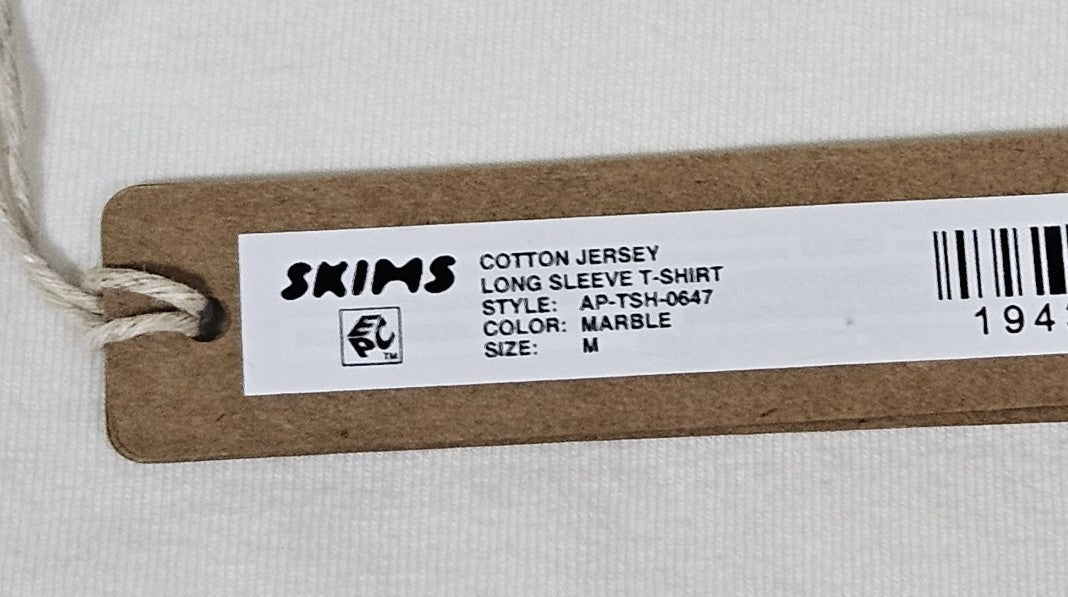 Skims Cotton Jersey Long Sleeve T-Shirt - Size Medium M - Marble White - NEW