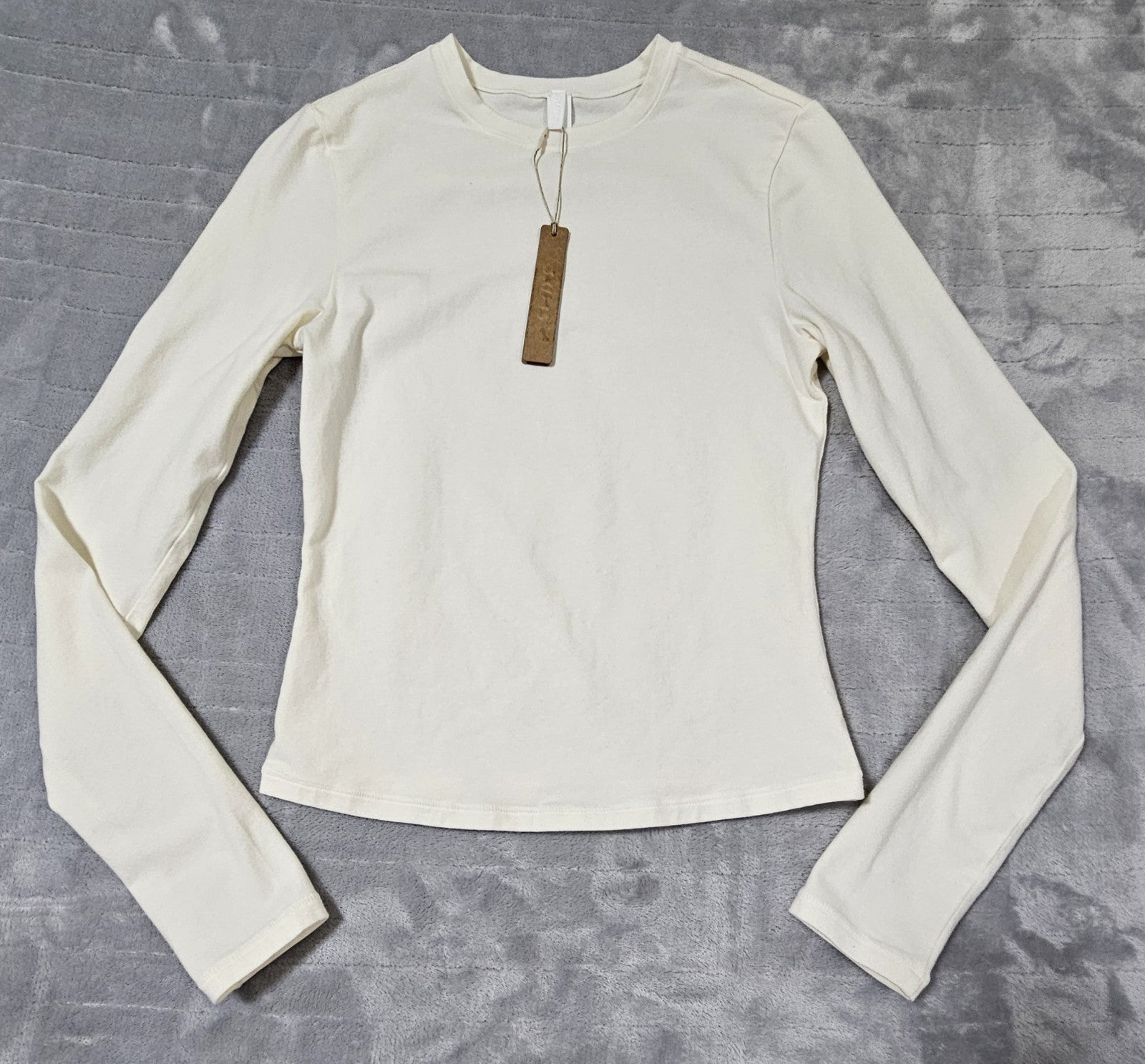 Skims Cotton Jersey Long Sleeve T-Shirt | Size S Small | Marble White | NEW