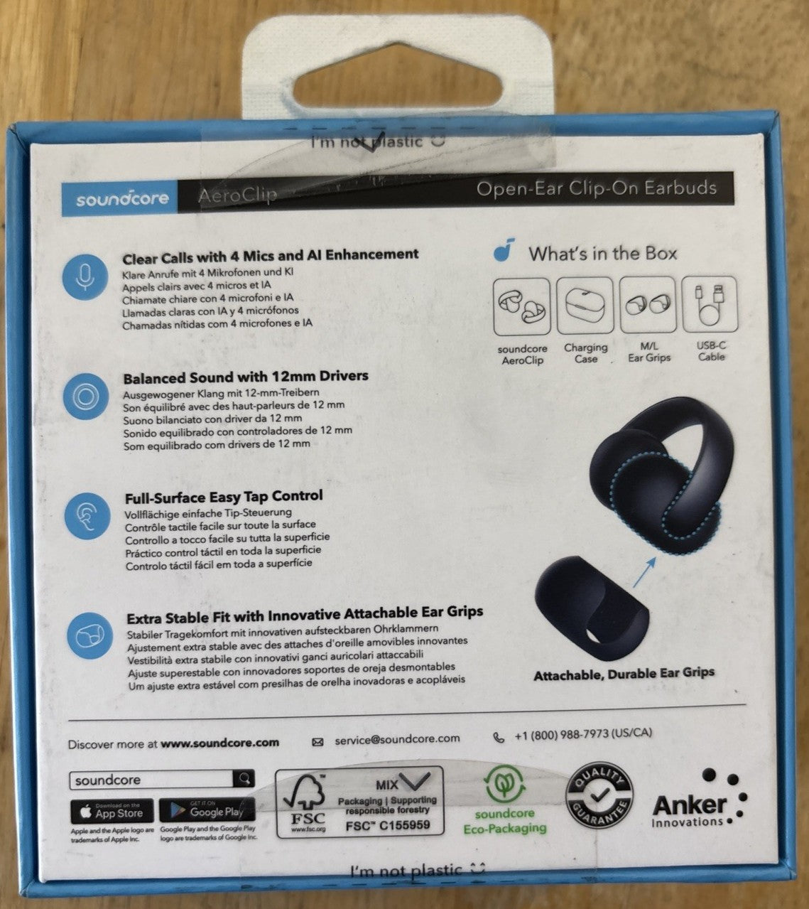 Soundcore AeroClip Open-Ear Earbuds Clip-On Headphones Adaptive Comfort
