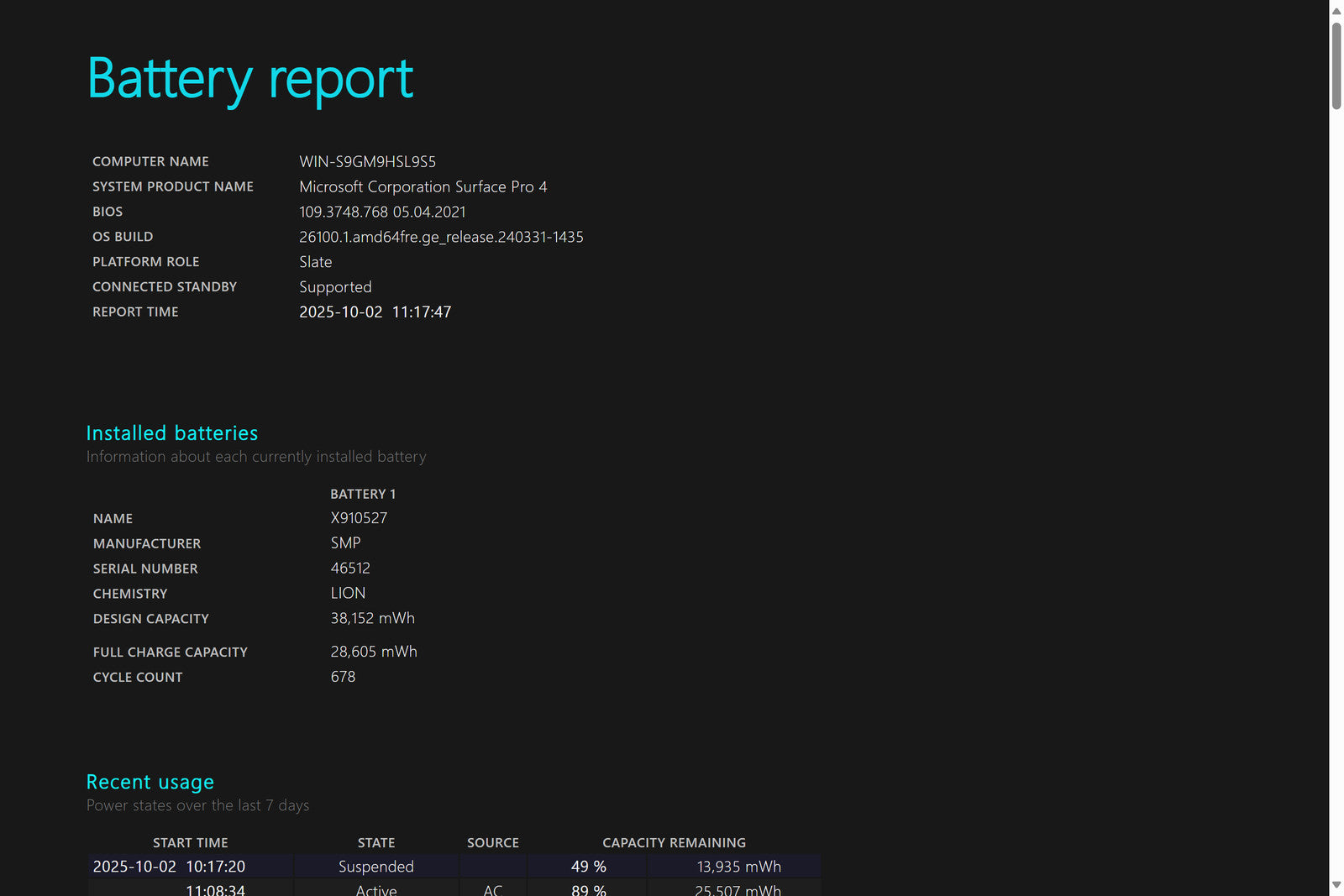 Battery Condition: 28,605/38,152 mWh 74.98%