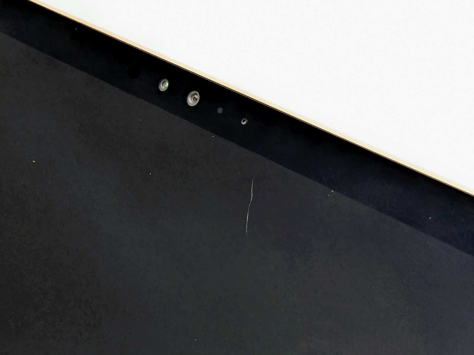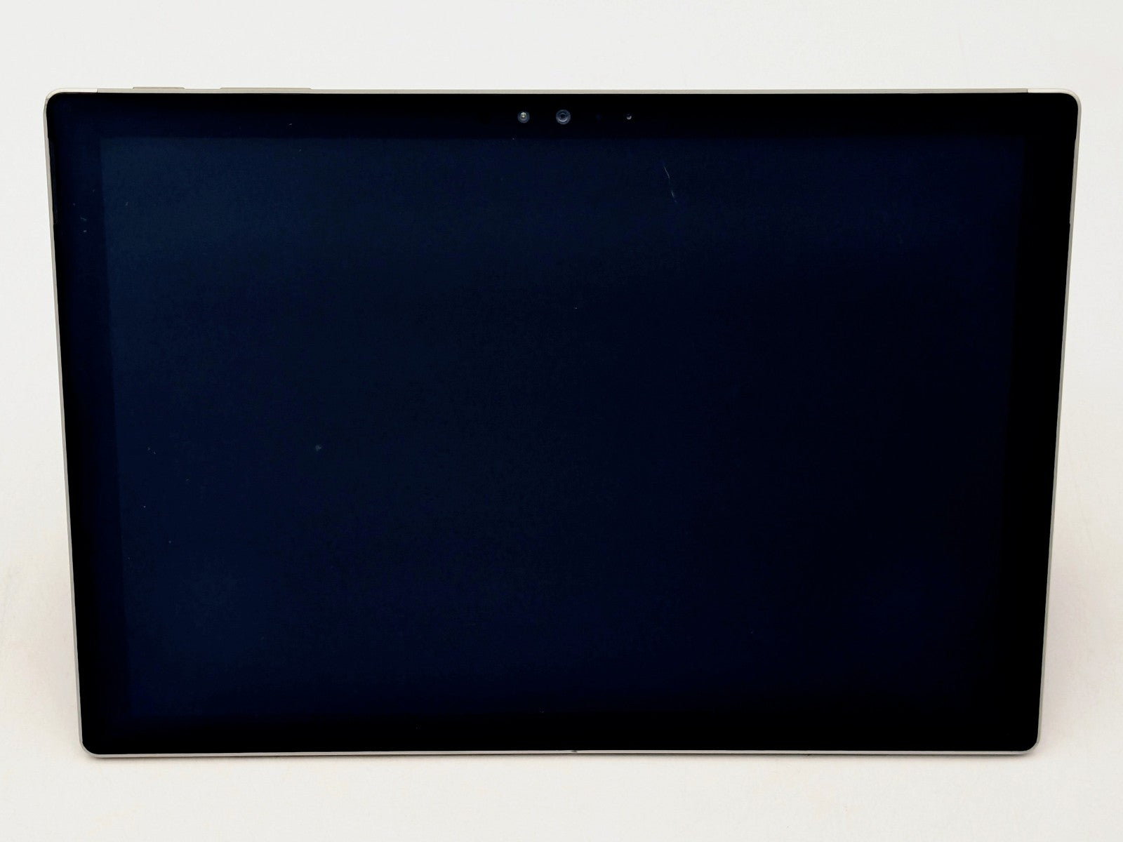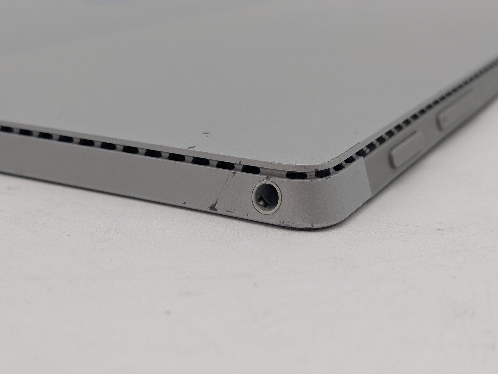 Cosmetic Defects: Display has visible crack and scratches, wear on bezel. Visible wear and scratches on bottom cover, wear on and under kickstand. Wear/scratches along edges of device.