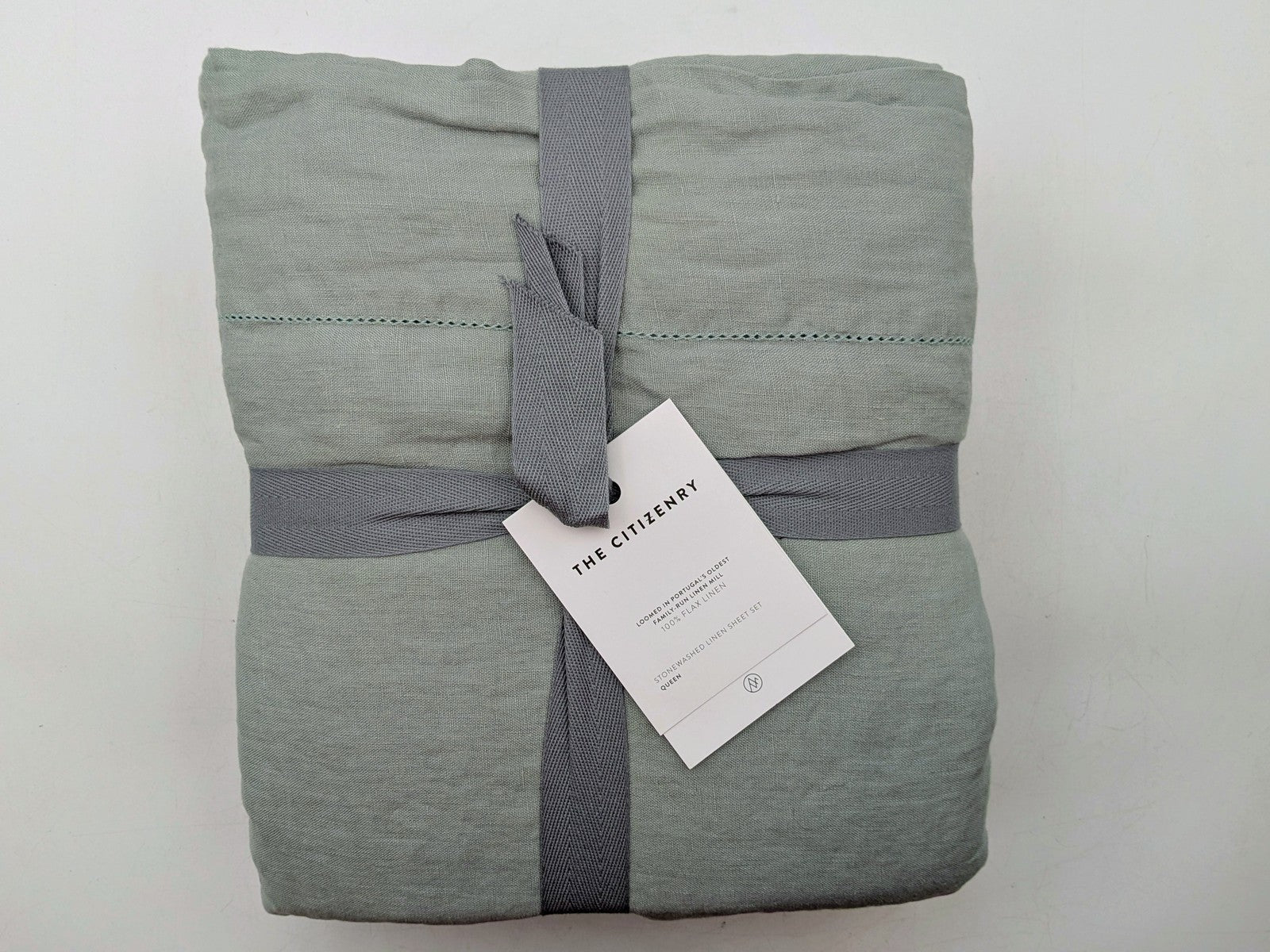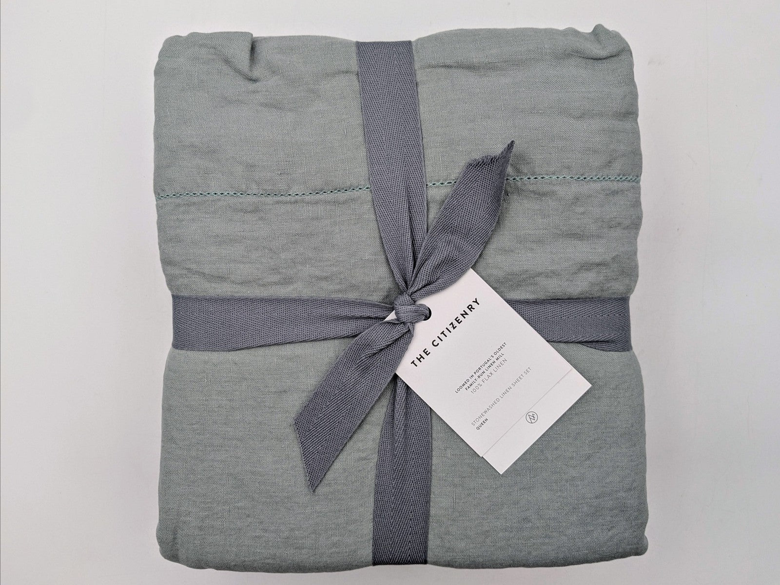 The Citizen Stonewash Linen Sheet Set Queen - SEAGLASS