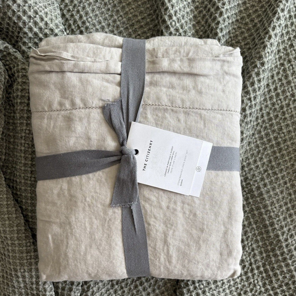 🆕 The Citizen Stonewash Linen Sheet Set Queen Solid Sand (4 Pieces)